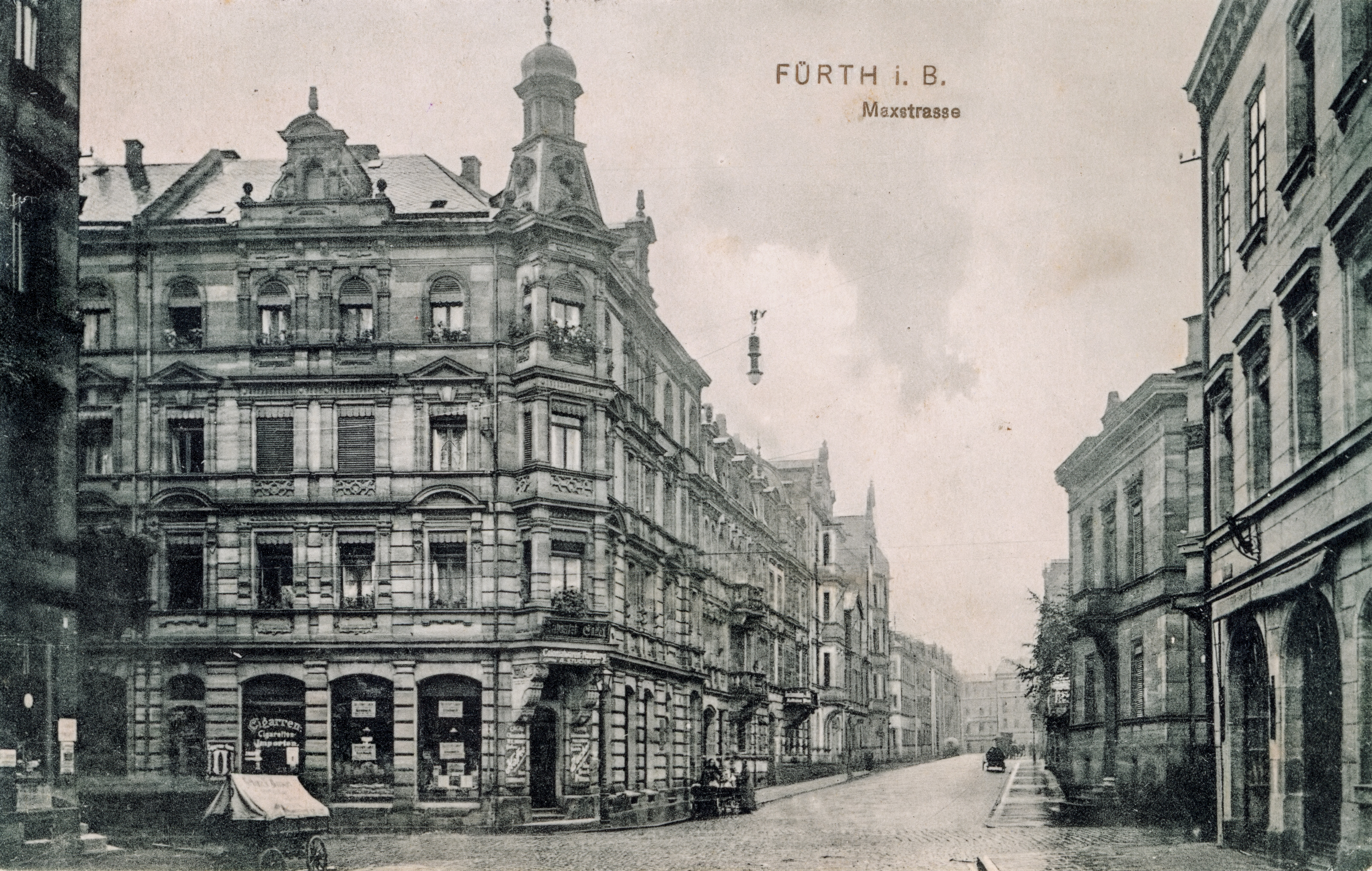 | Beschreibung | Ansichtskarte mit Blick in den Maxstraße, gel. Mrz 1911 | ||