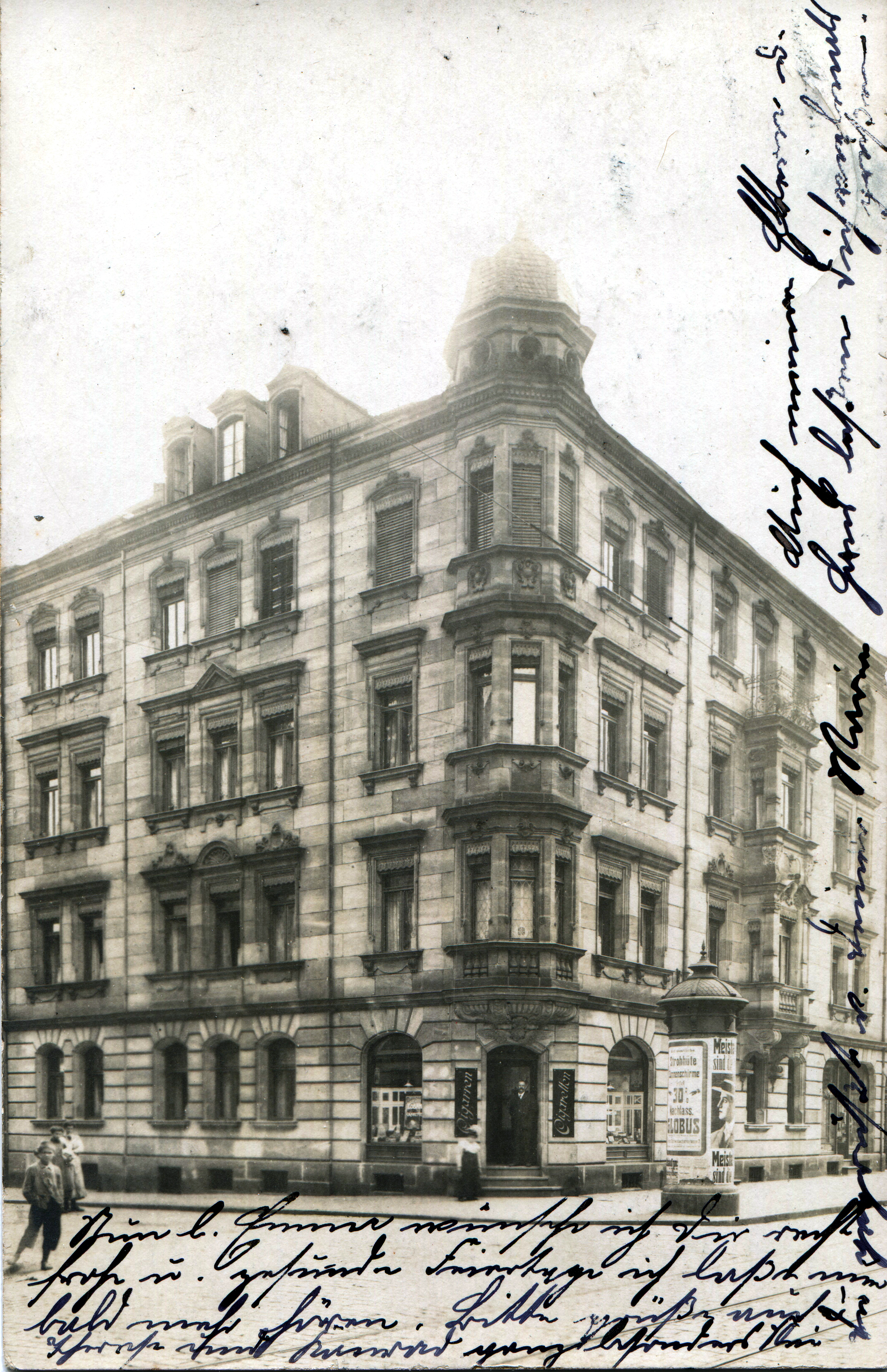 | Beschreibung | Nürnberger Straße 69 mit spielenden Kindern und Cigarrengeschäft im Erdgeschoss, gel. 1911 | ||