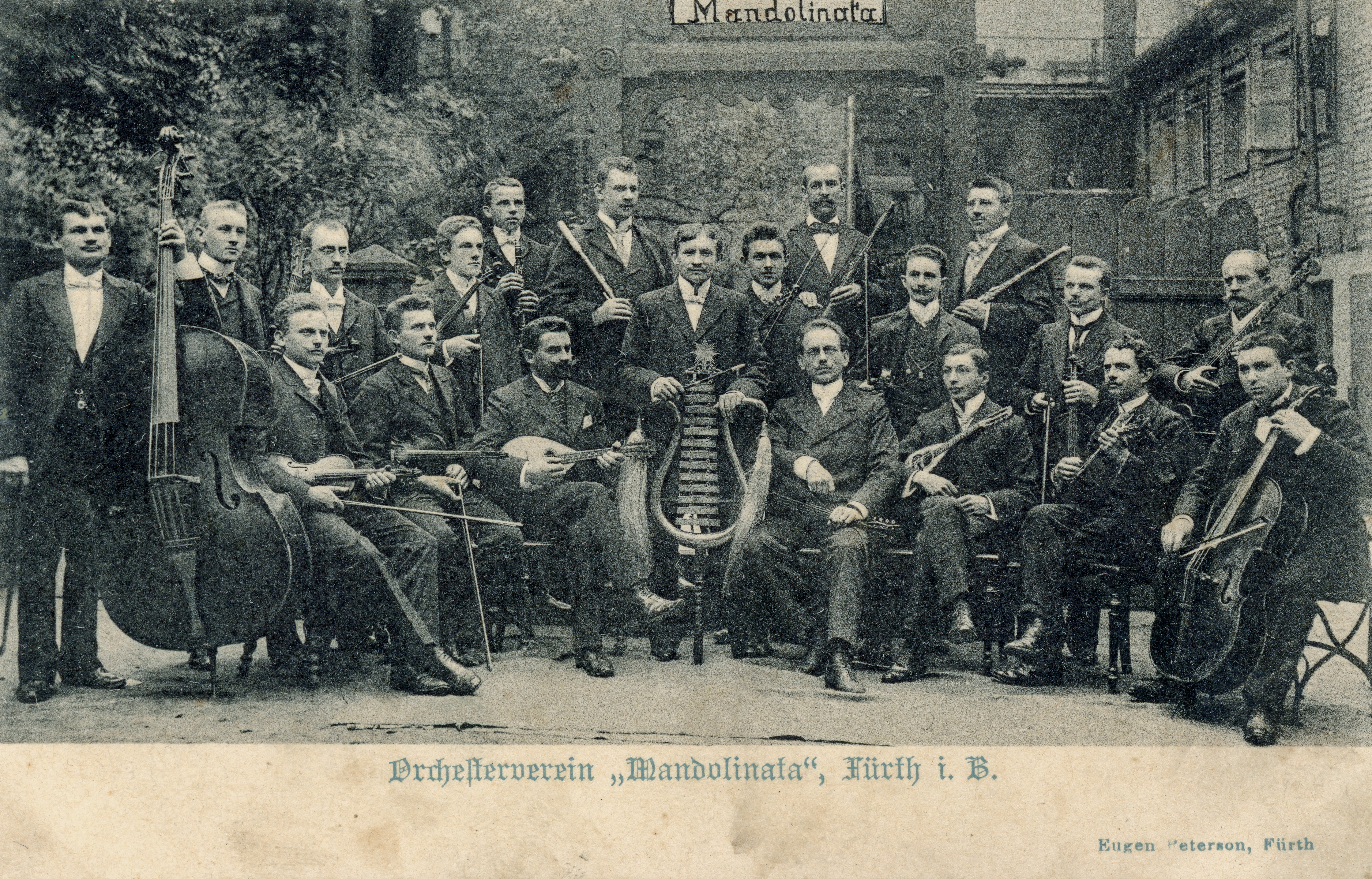 | Dateiinfo (Bild-Unterschrift und Info-Box, automatisch erstellt) | Orchesterverein Mandolinata aus Fürth, ca. 1900 Urheber: Eugen Peterson<br><br>Lizenz: CC BY-SA 4.0 | ||