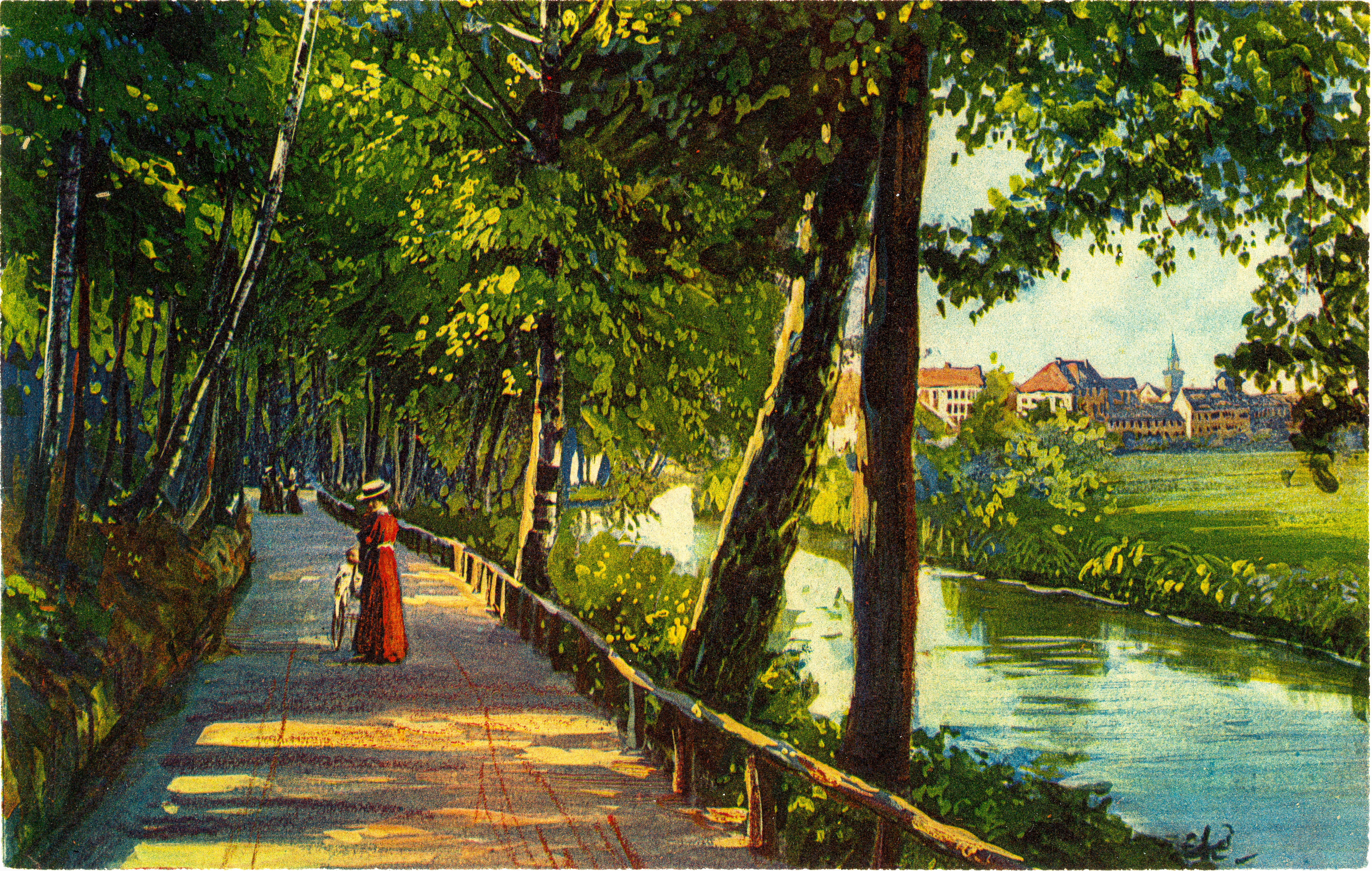 | Dateiinfo (Bild-Unterschrift und Info-Box, automatisch erstellt) | Partie aus dem Stadtpark, Ansichtskarte von 1908 Urheber: unbekannt<br><br>Lizenz: CC BY-SA 3.0 | ||