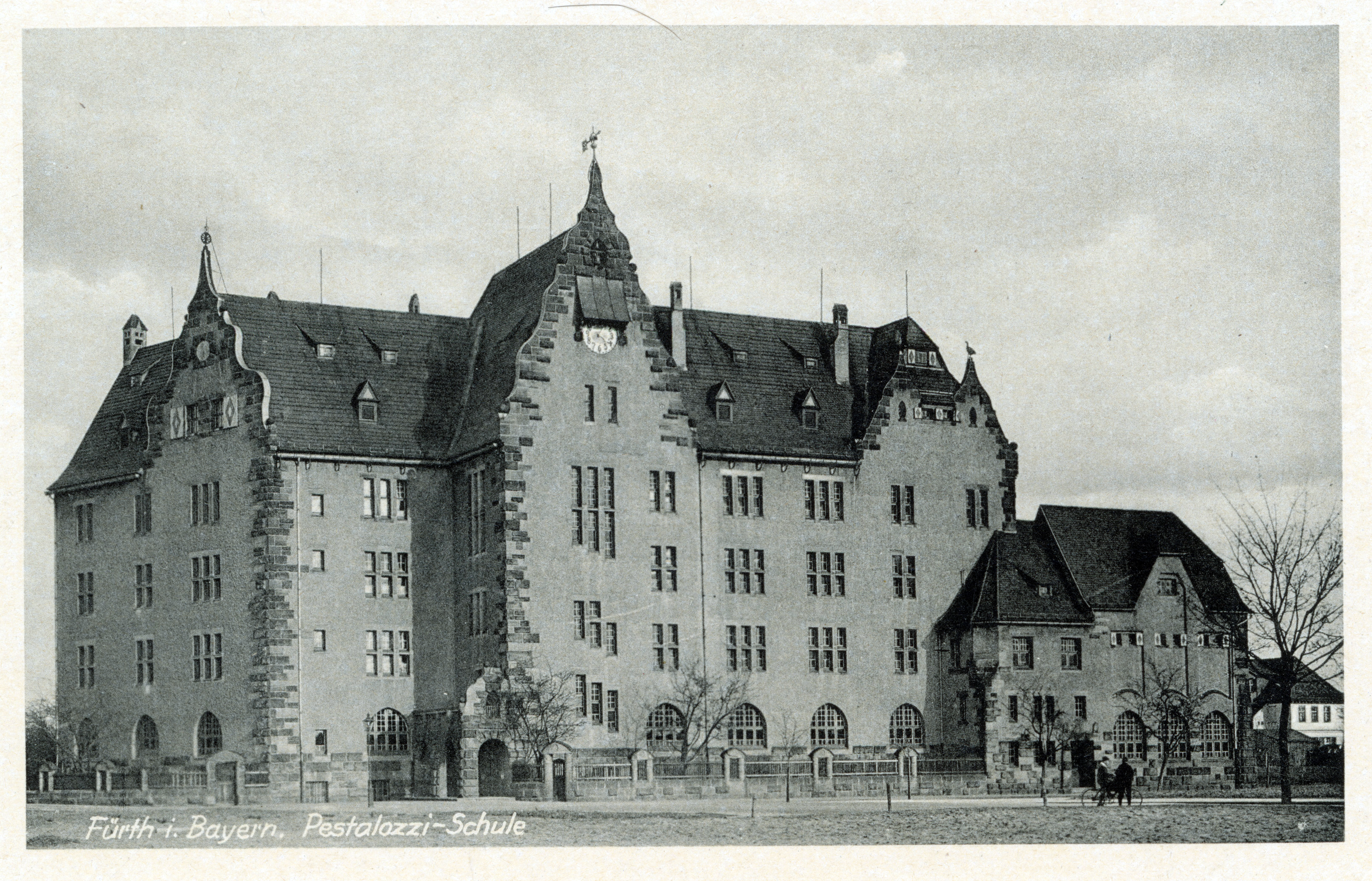 | Beschreibung | Ansichtskarte der Grund- und Mittelschule Pestalozzistraße, ca. 1910 | ||
