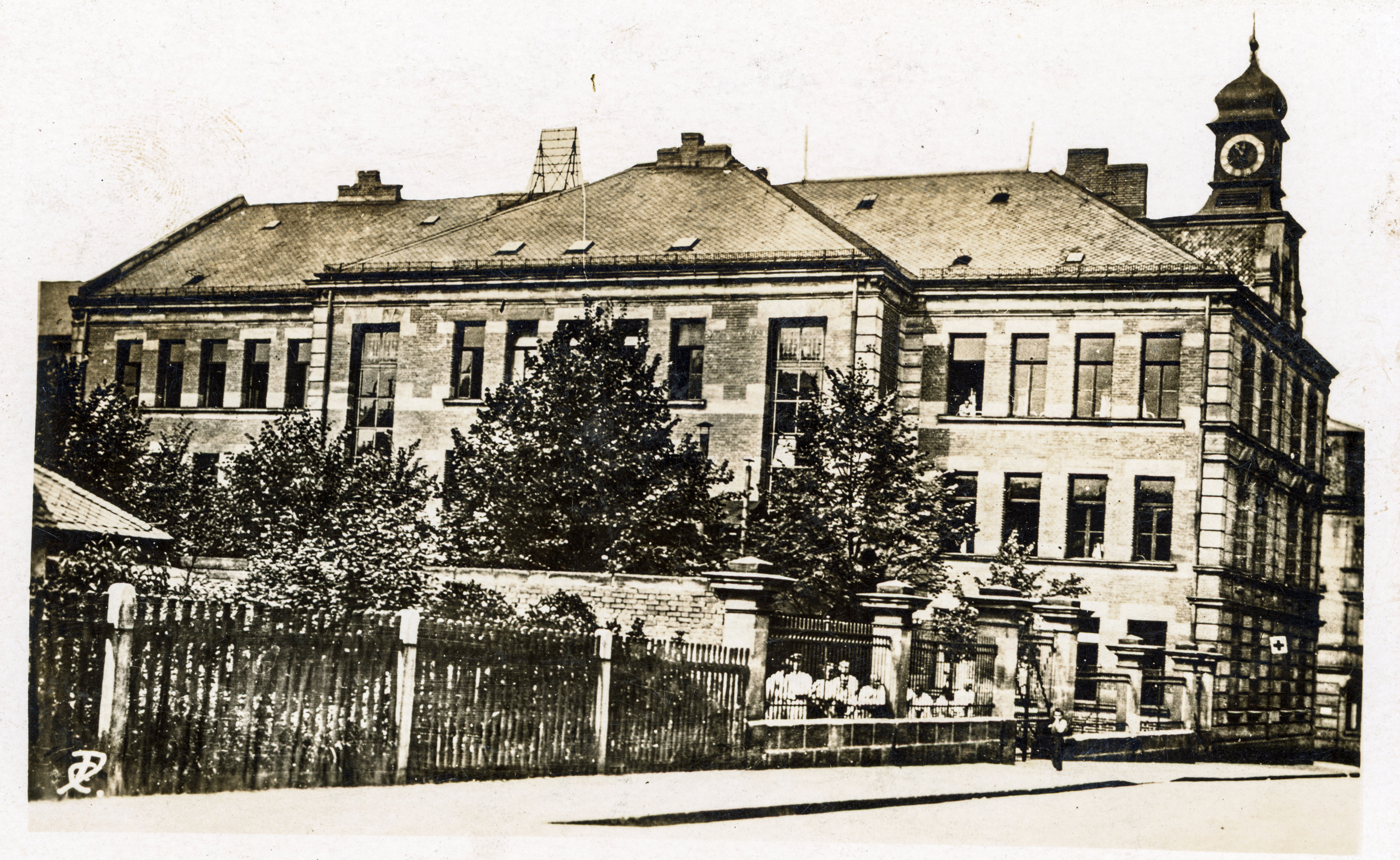 | Beschreibung | Die ehem. Pfisterschule, die während des Ersten Weltkrieges auch ein Reservelazarett war, gel. Okt 1916 | ||