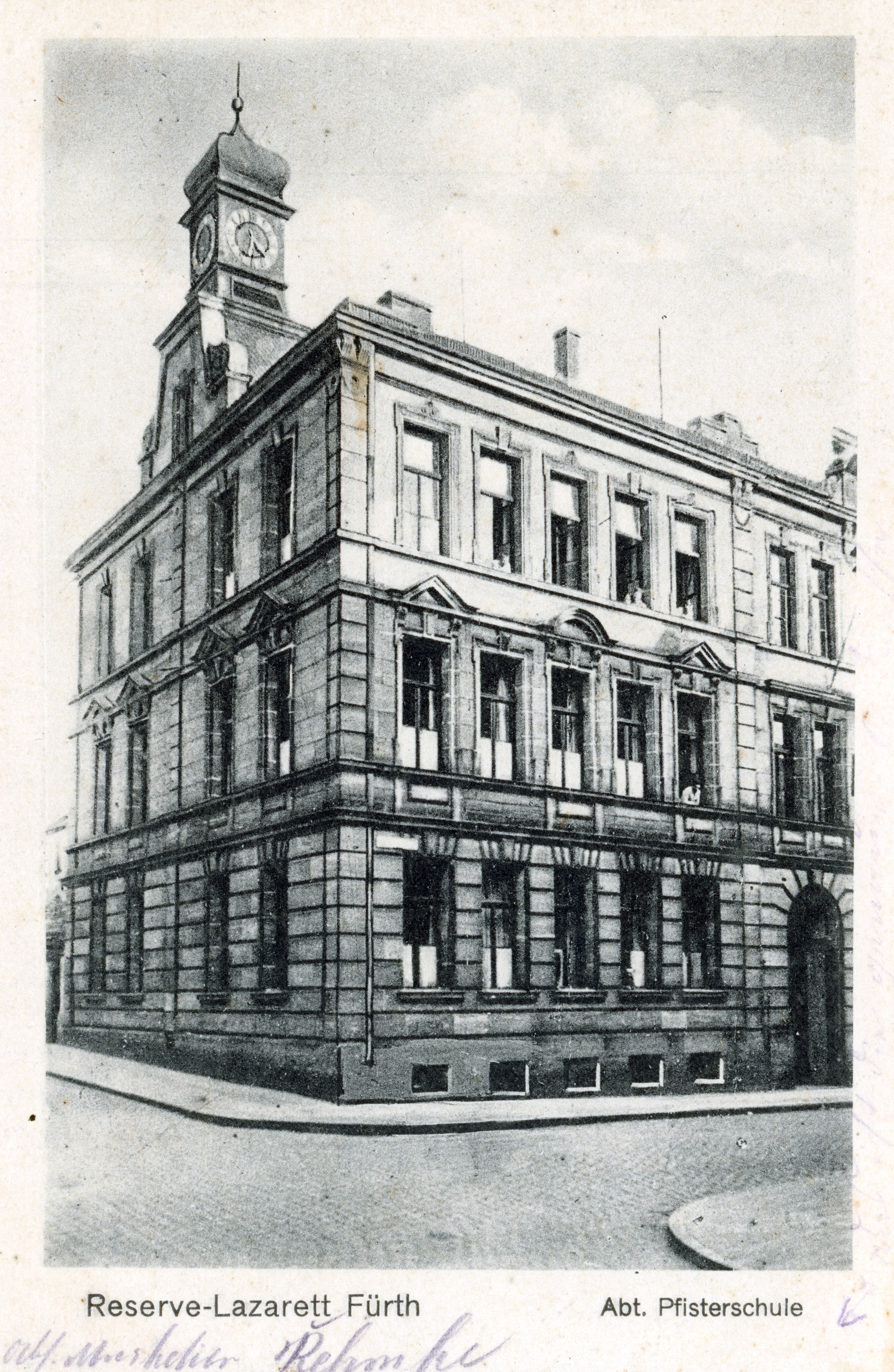 | Beschreibung | Die ehem. Pfisterschule, gel. Juni 1916 | ||