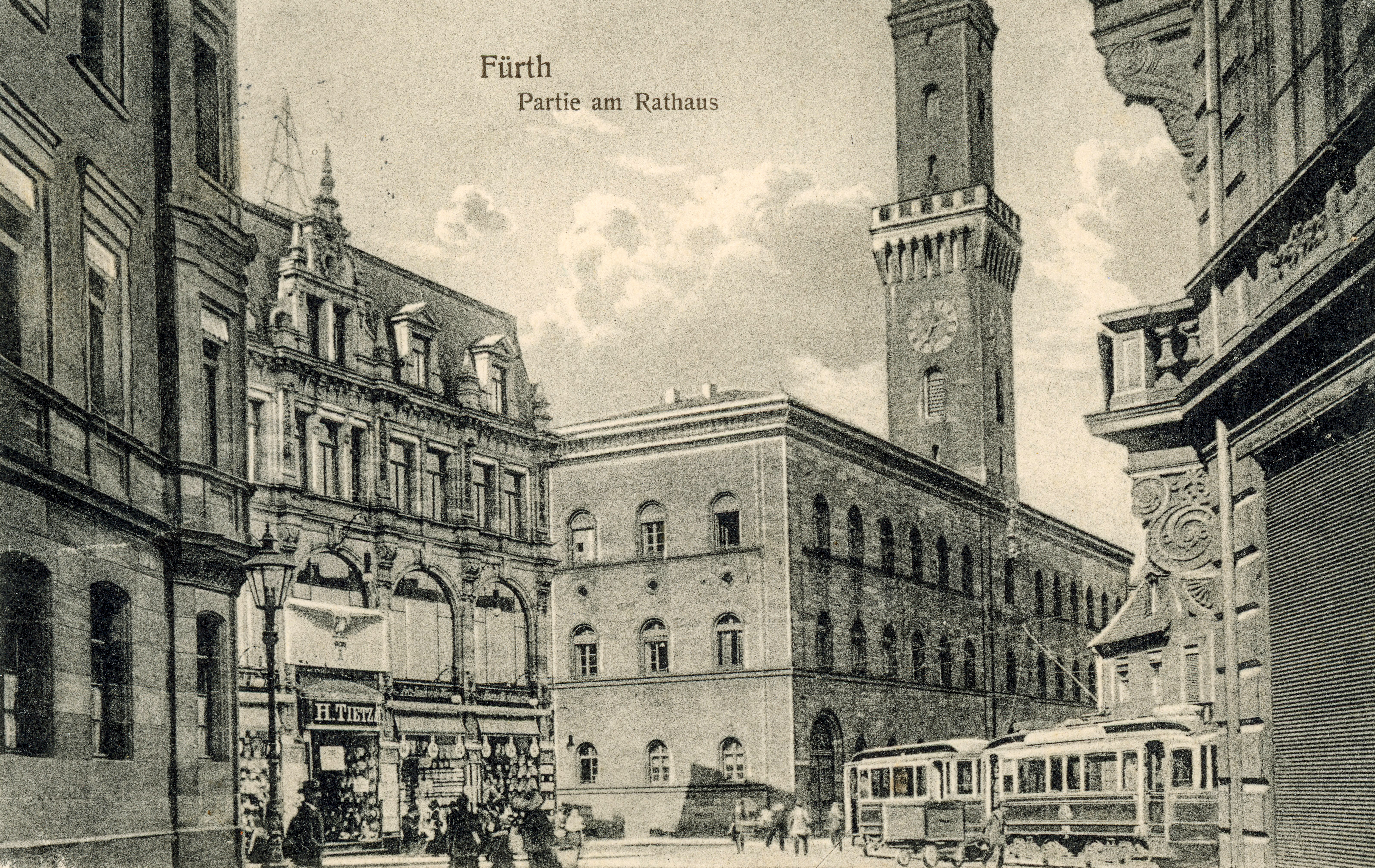 | Beschreibung | Alte Ansichtskarte vom Kohlenmarkt mit dem Kaufhaus Tietz und dem Rathaus, gel. 1912 | ||