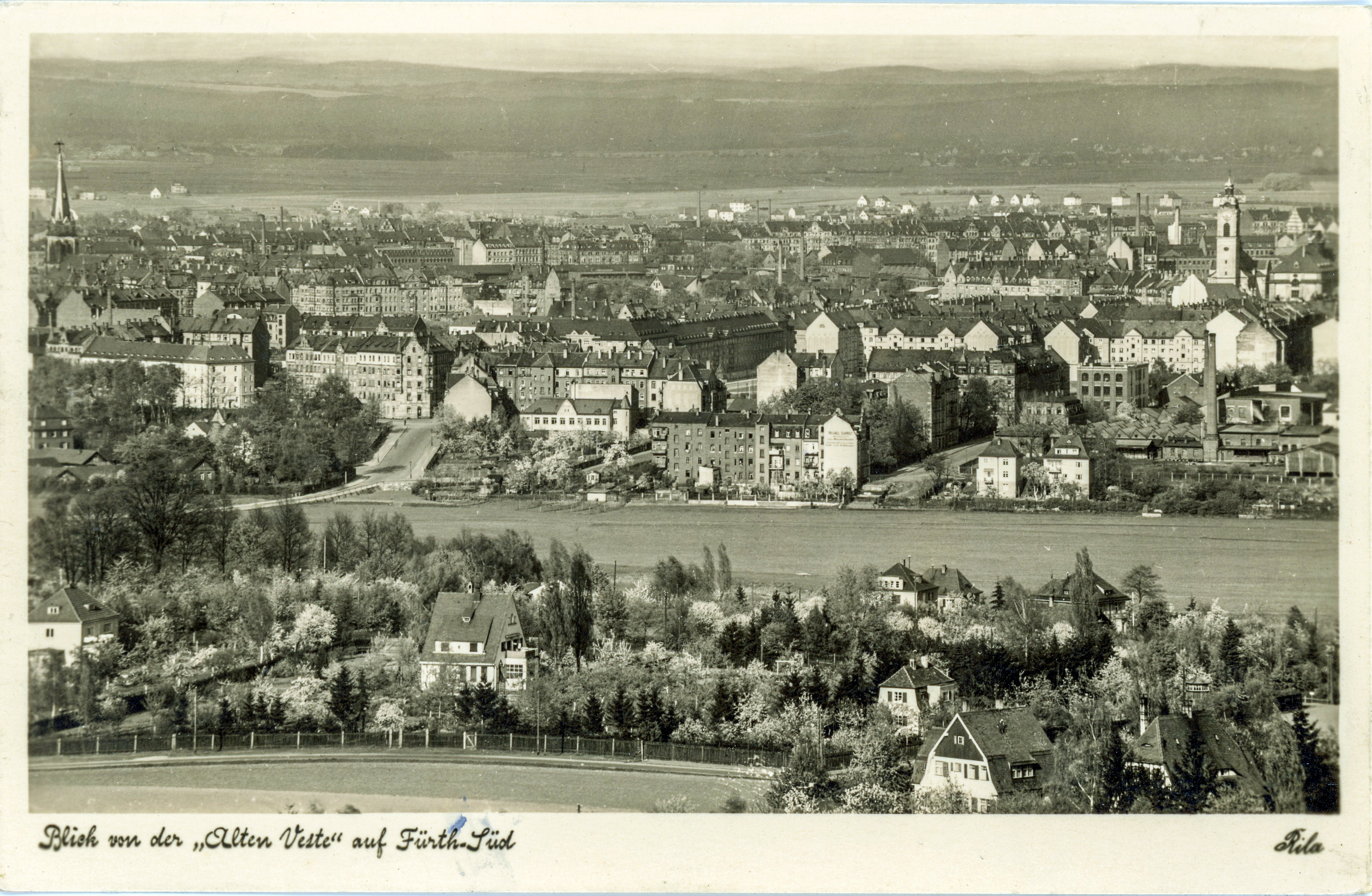 | Beschreibung | Blick von der Alten Veste über die Südstadt, März 1941 | ||