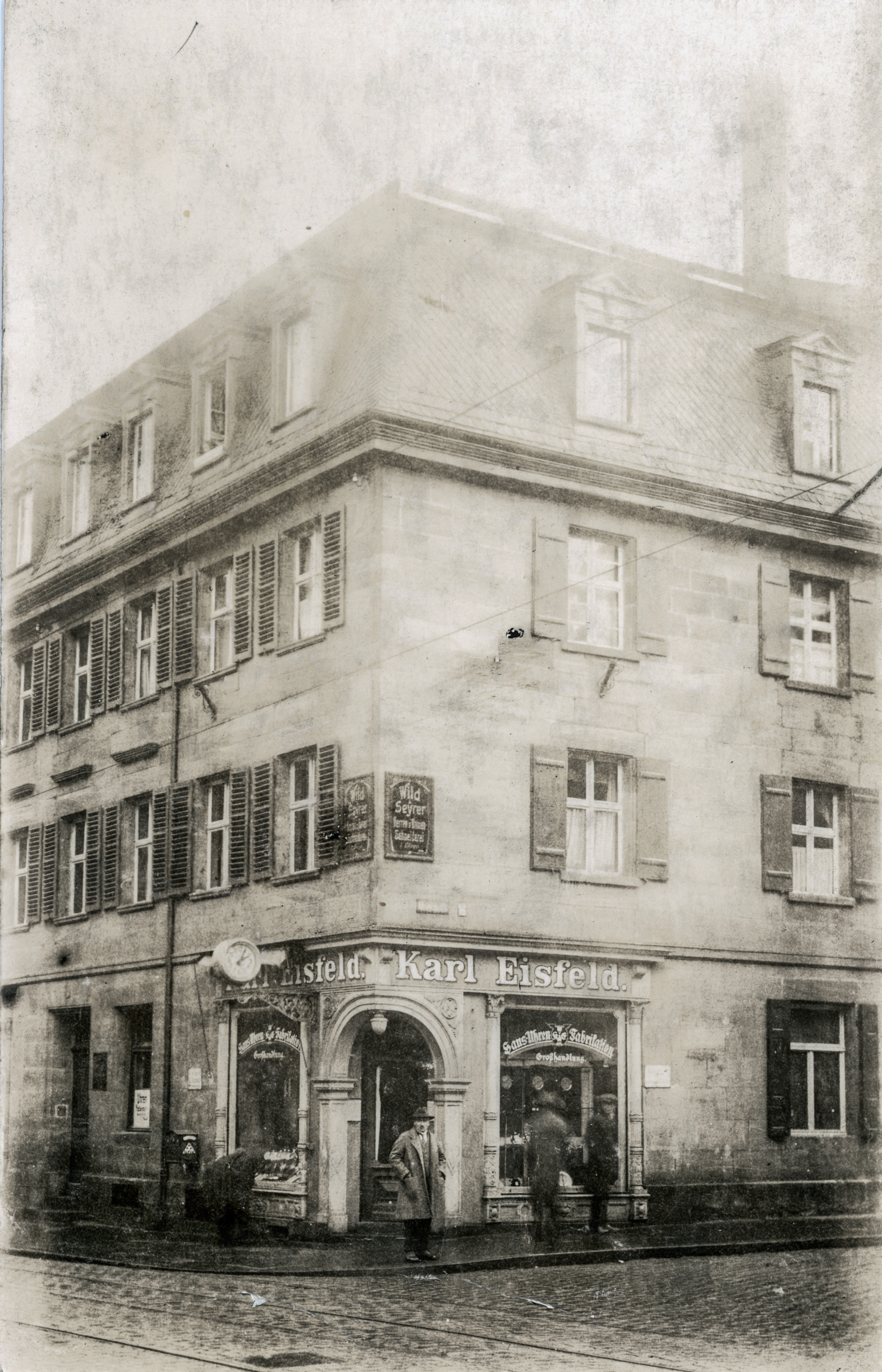 | Beschreibung | Uhrenhandlung Karl Eisefeld in der Schwabacher Straße 48, ngl. ca 1910 | ||