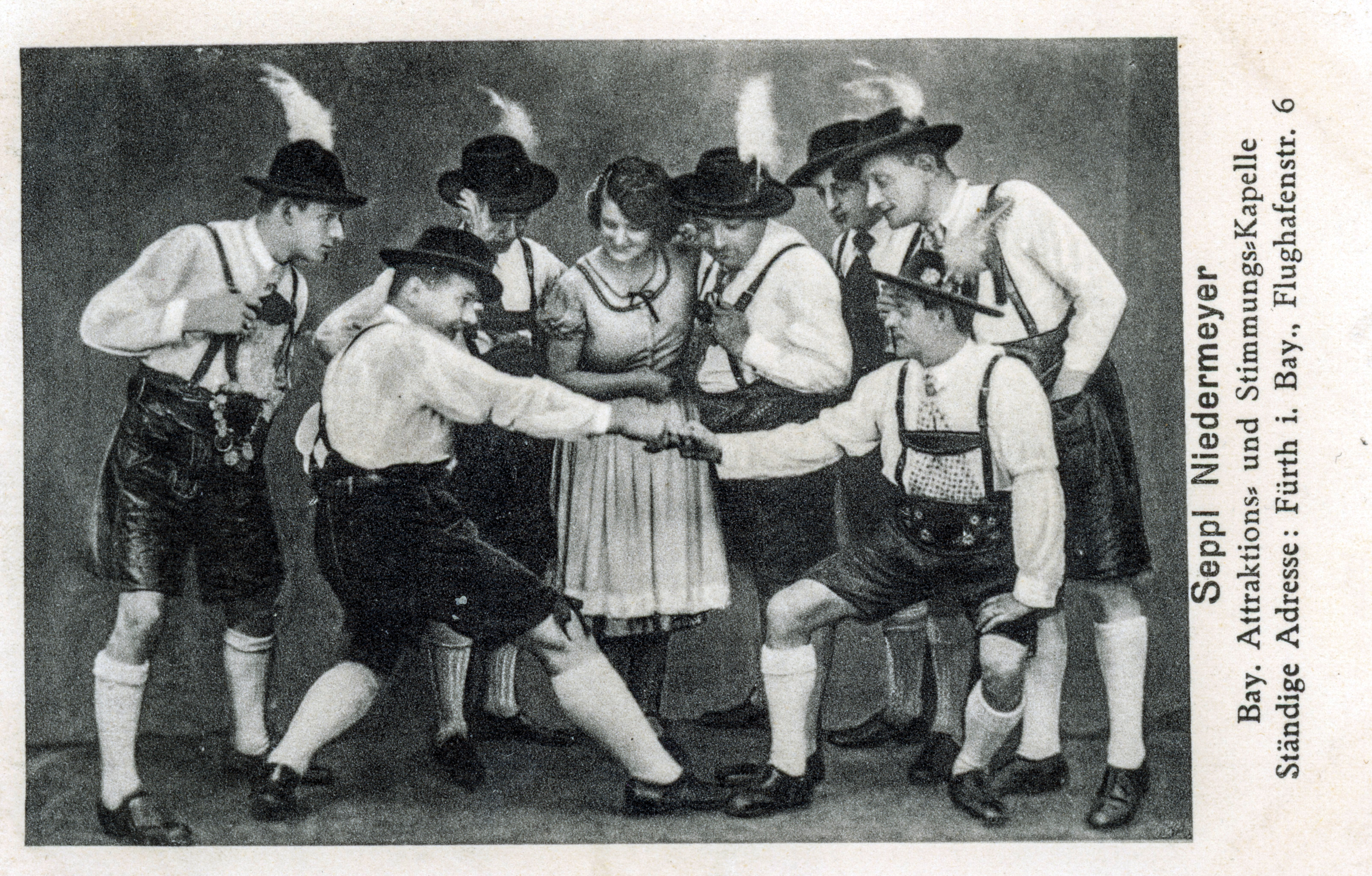 | Dateiinfo (Bild-Unterschrift und Info-Box, automatisch erstellt) | Kapelle Seppl Niedermeyer aus der ehem. Flughafenfstraße 6 in Fürth, ca. 1900 Urheber: unbekannt<br><br>Lizenz: CC BY-SA 4.0 | ||