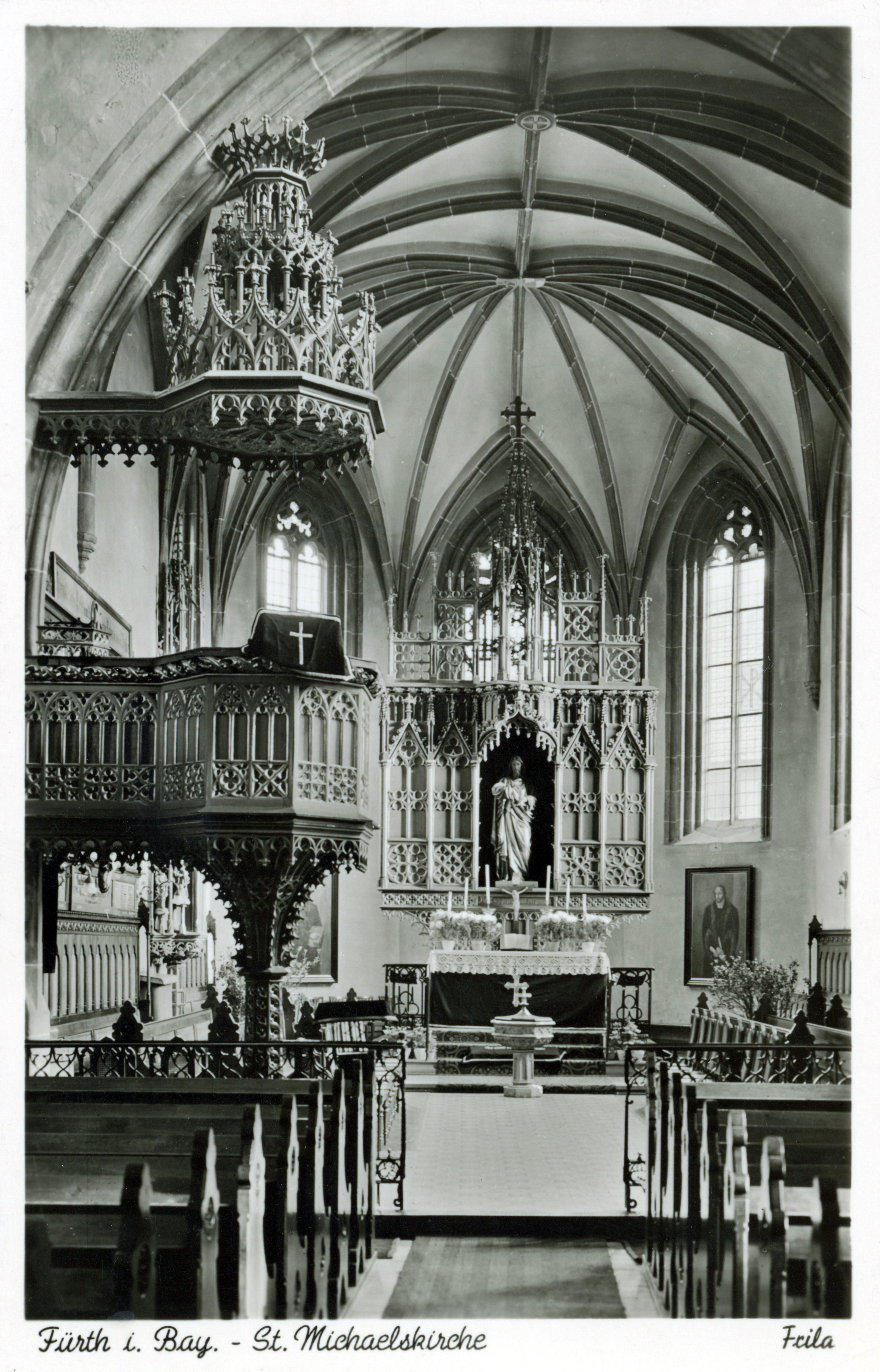 | Beschreibung | Altarraum der Michaeliskirche, ngl. ca. 1950 | ||
