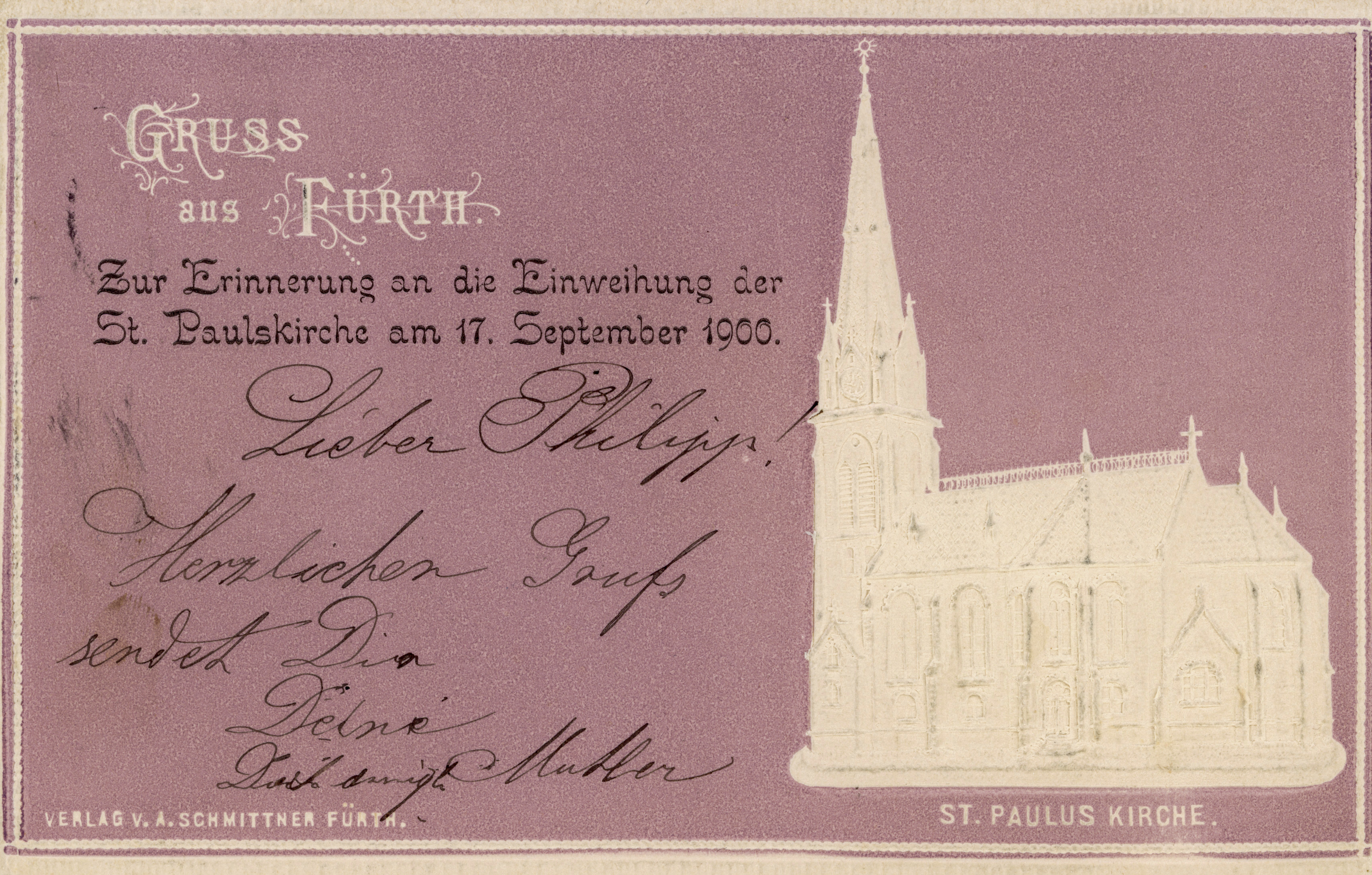 | Beschreibung | Kirche St. Paul in der Südstadt, gel. Sept 1900 | ||
