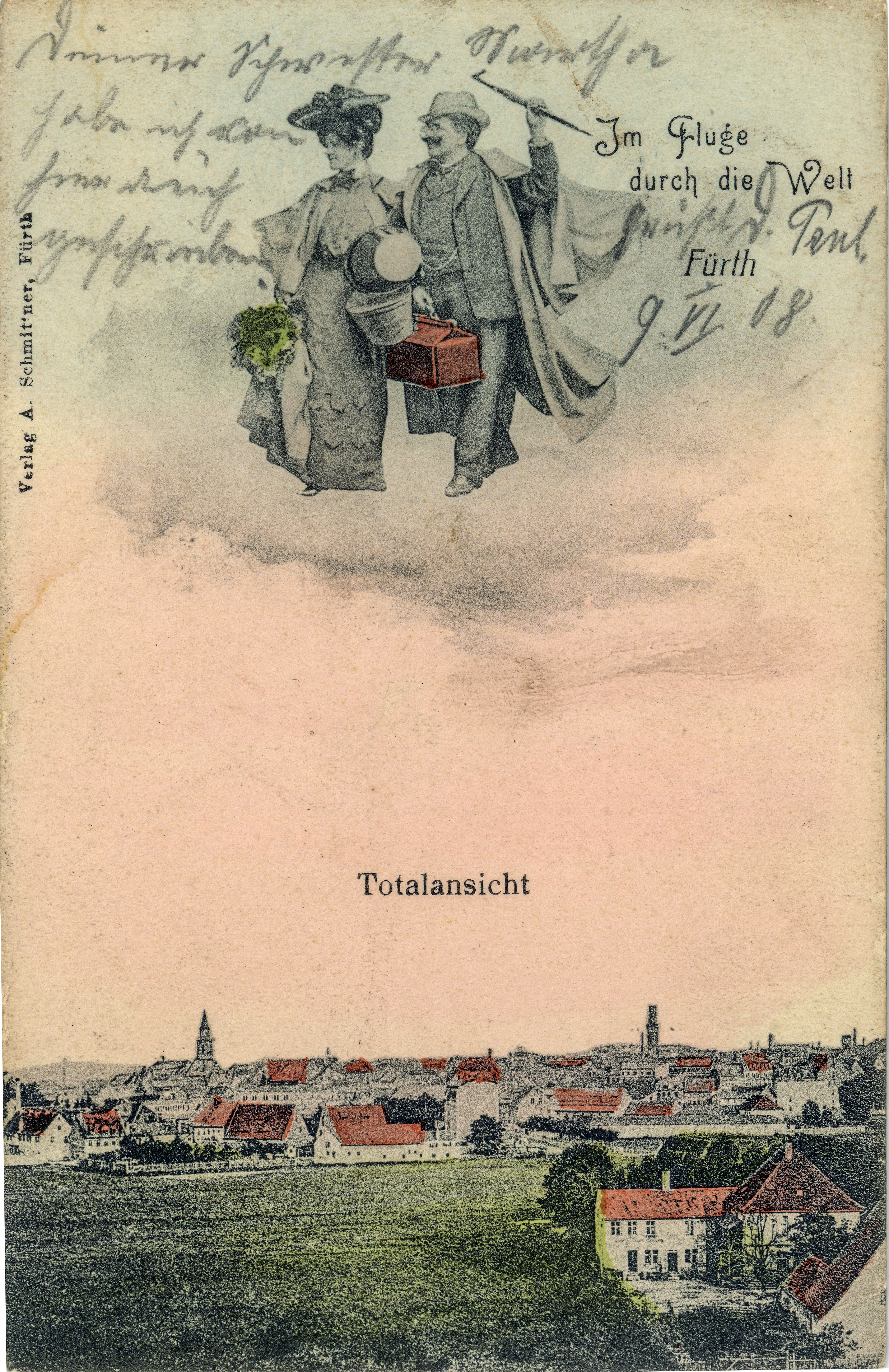 | Dateiinfo (Bild-Unterschrift und Info-Box, automatisch erstellt) | Ansichtskarte mit Blick über die Stadt - mit einem zeitgenössischen Motiv "Im Fluge durch die Welt", ... Ansichtskarte mit Blick über die Stadt - mit einem zeitgenössischen Motiv "Im Fluge durch die Welt", gel. 1908<br>Urheber: unbekannt<br><br>Lizenz: CC BY-SA 3.0 | ||