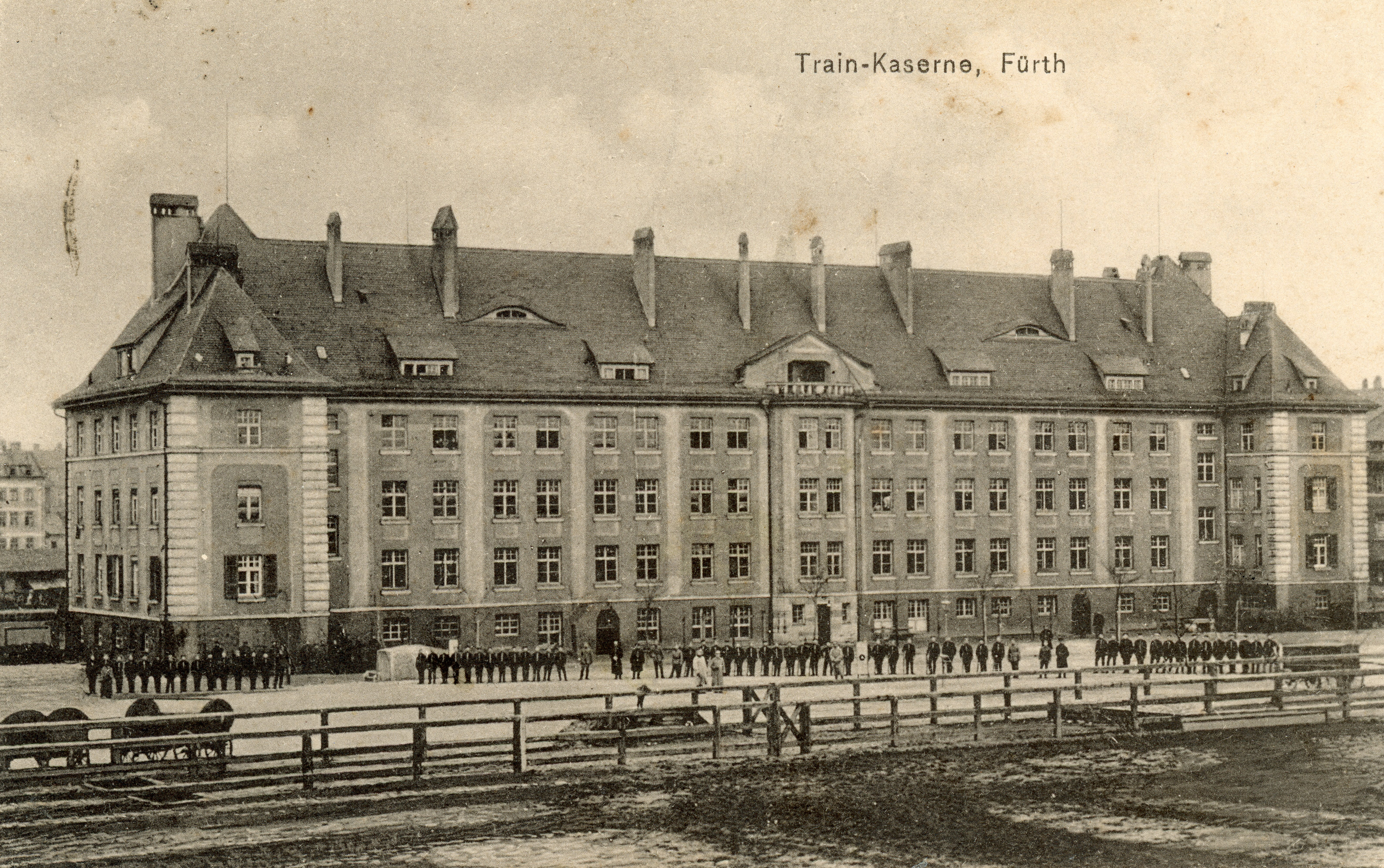 | Dateiinfo (Bild-Unterschrift und Info-Box, automatisch erstellt) | Ansichtskarte Train-Kaserne, gel. Sept 1918 Urheber: unbekannt<br><br>Lizenz: CC BY-SA 4.0 | ||