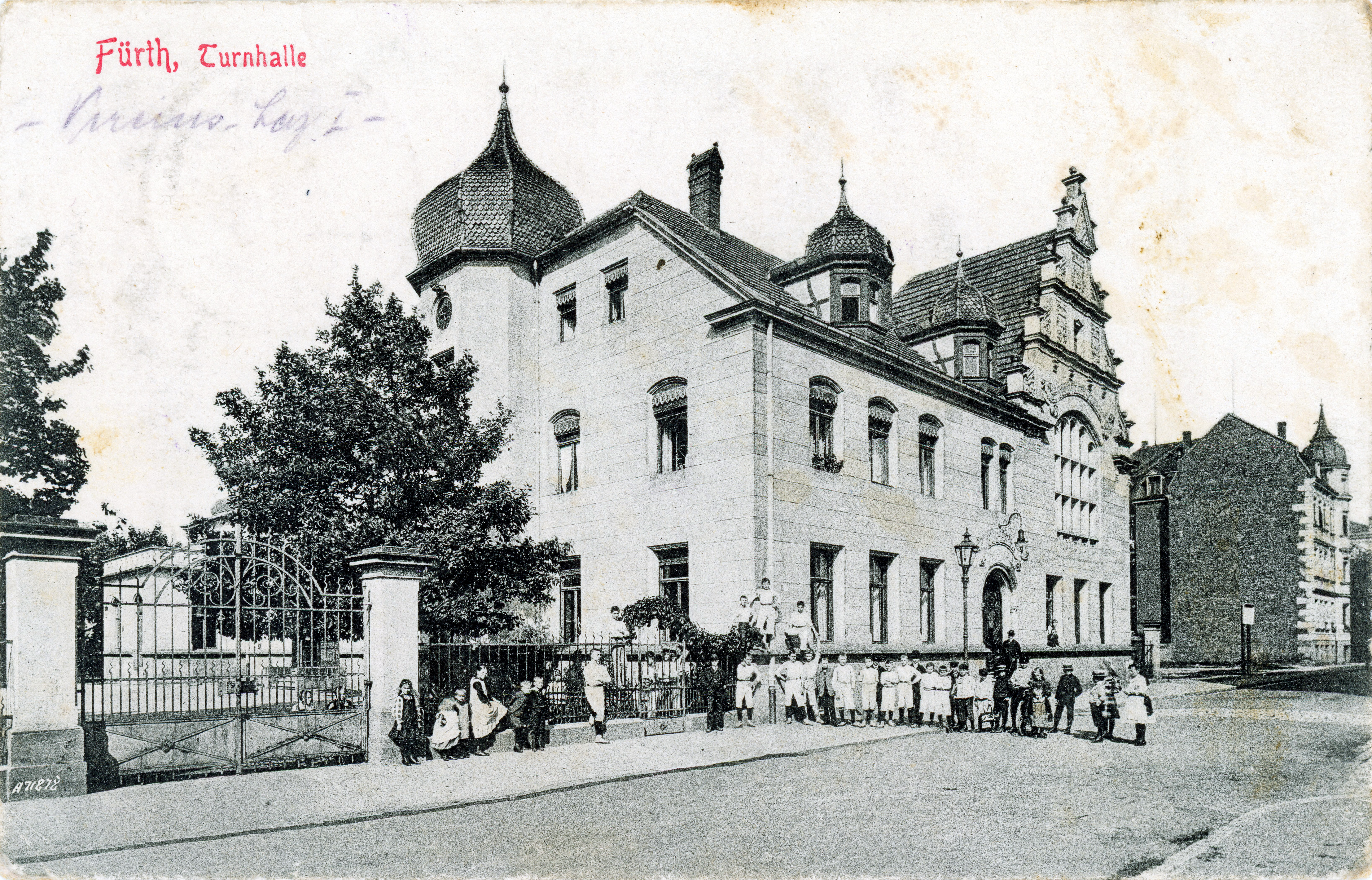 | Dateiinfo (Bild-Unterschrift und Info-Box, automatisch erstellt) | Turnhalle des TV Fürth 1860 in der Turnstraße, gel. 1916 Urheber: unbekannt<br><br>Lizenz: CC BY-SA 3.0 | ||