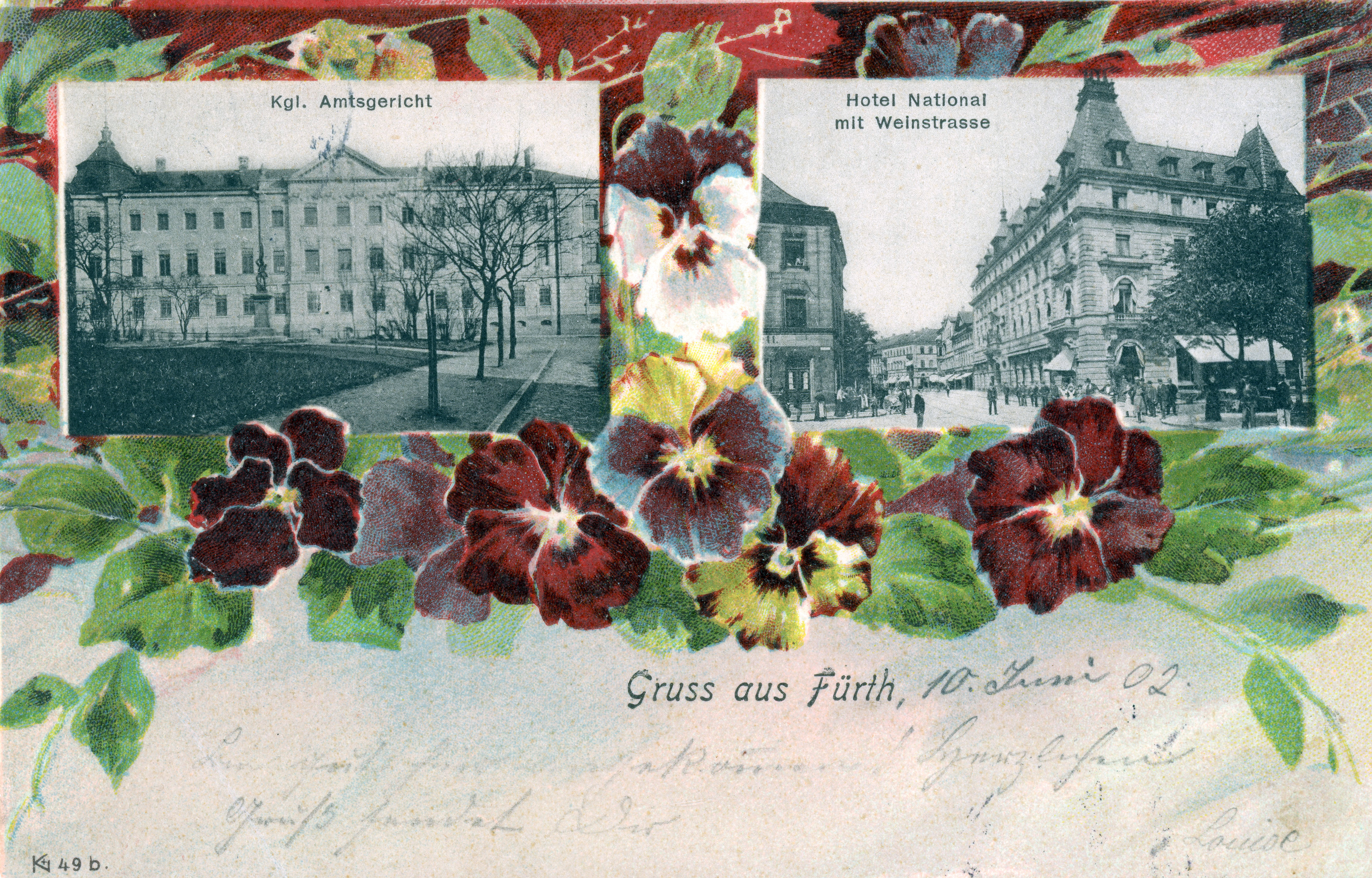 | Dateiinfo (Bild-Unterschrift und Info-Box, automatisch erstellt) | Ansichtskarte mit zwei Motiven - verziert mit Blumen, gel. Jul 1902 Urheber: unbekannt<br><br>Lizenz: CC BY-SA 4.0 | ||