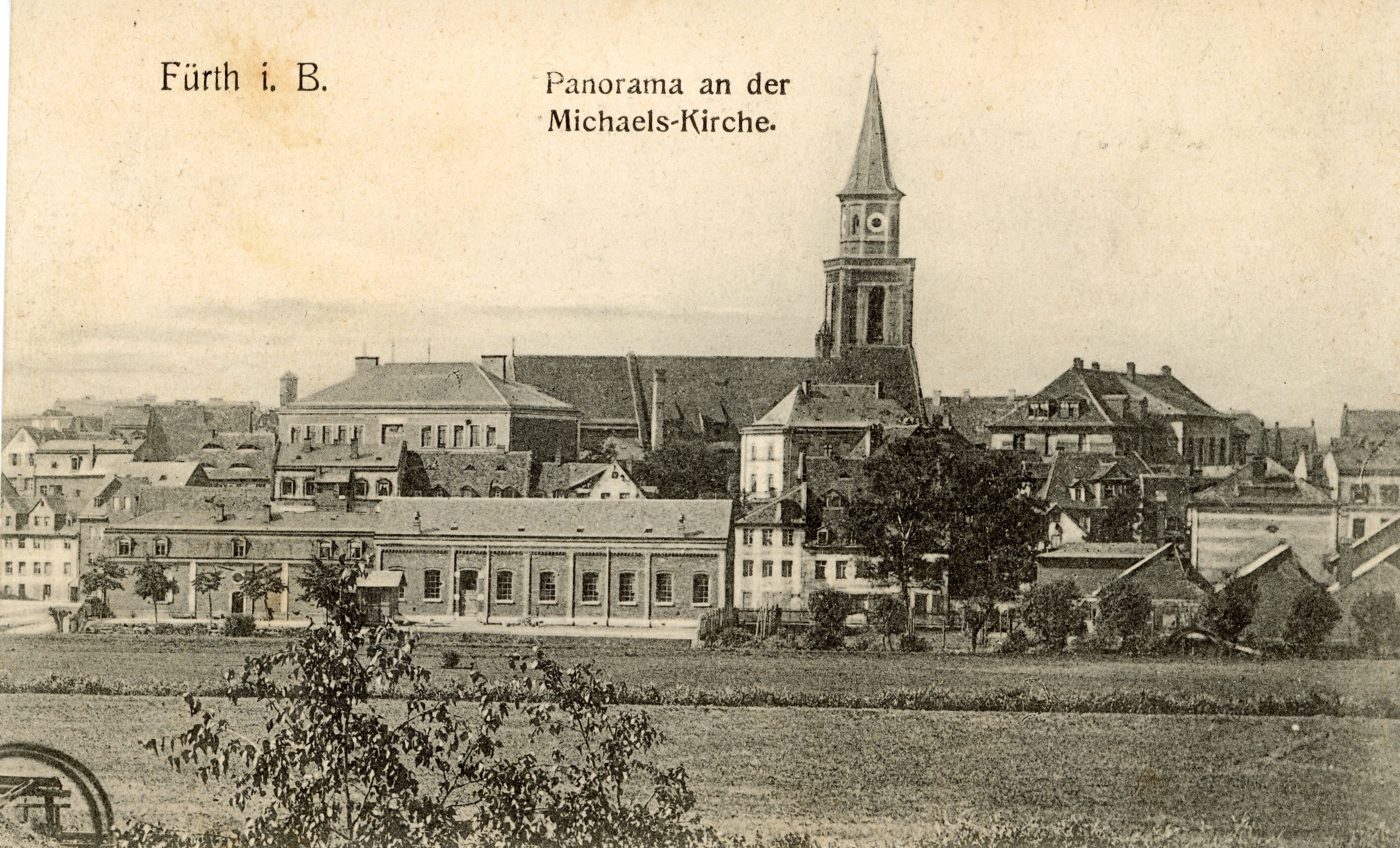 | Beschreibung | Blick über den Wiesengrund, im Hintergrund die Kirche St. Michael, gel. Feb 1908 | ||