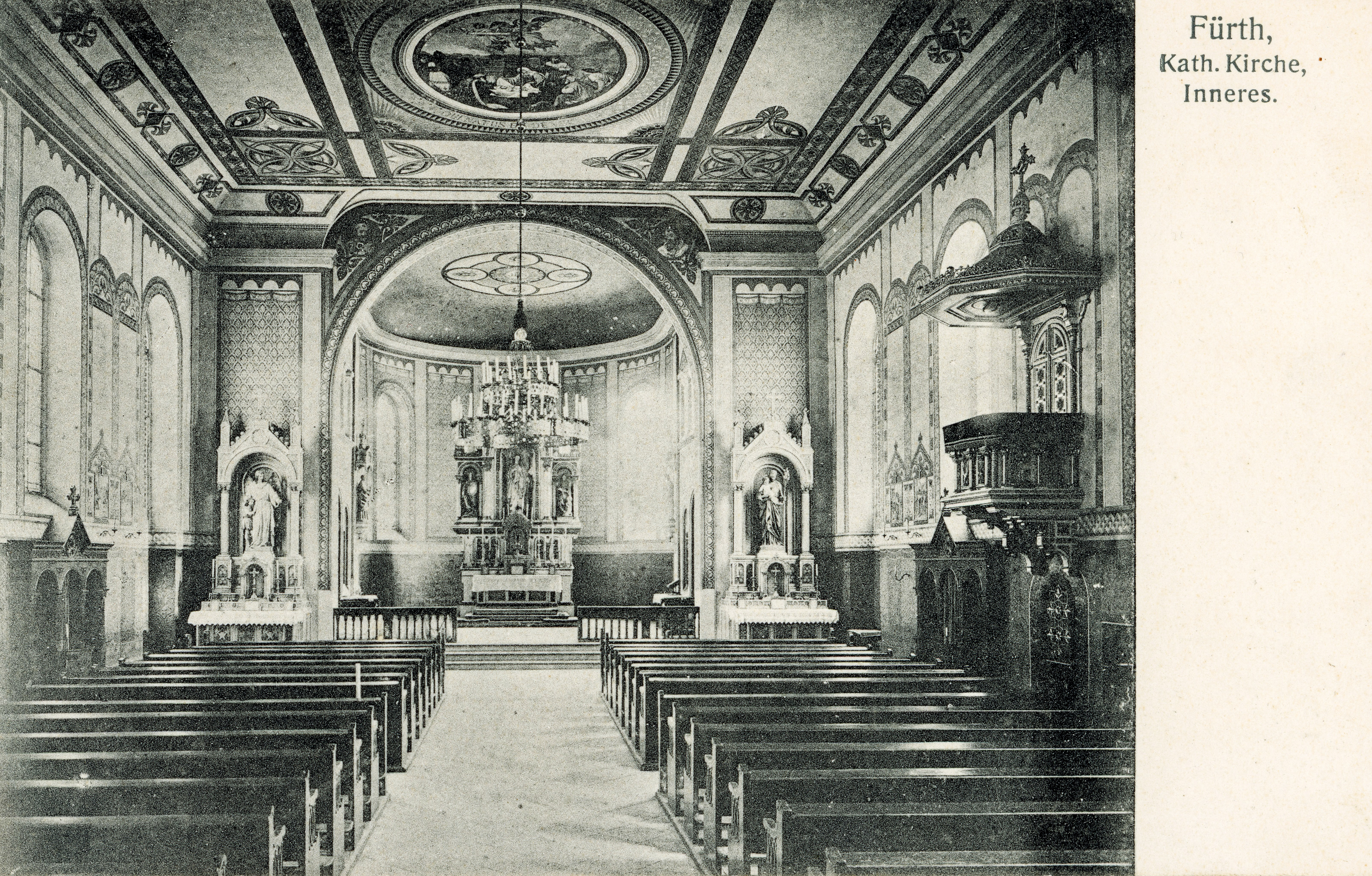 | Beschreibung | Ansichtskarte mit Blick in den Innenraum der Kirche Zu Unseren Lieben Frau, gel. 1908 | ||