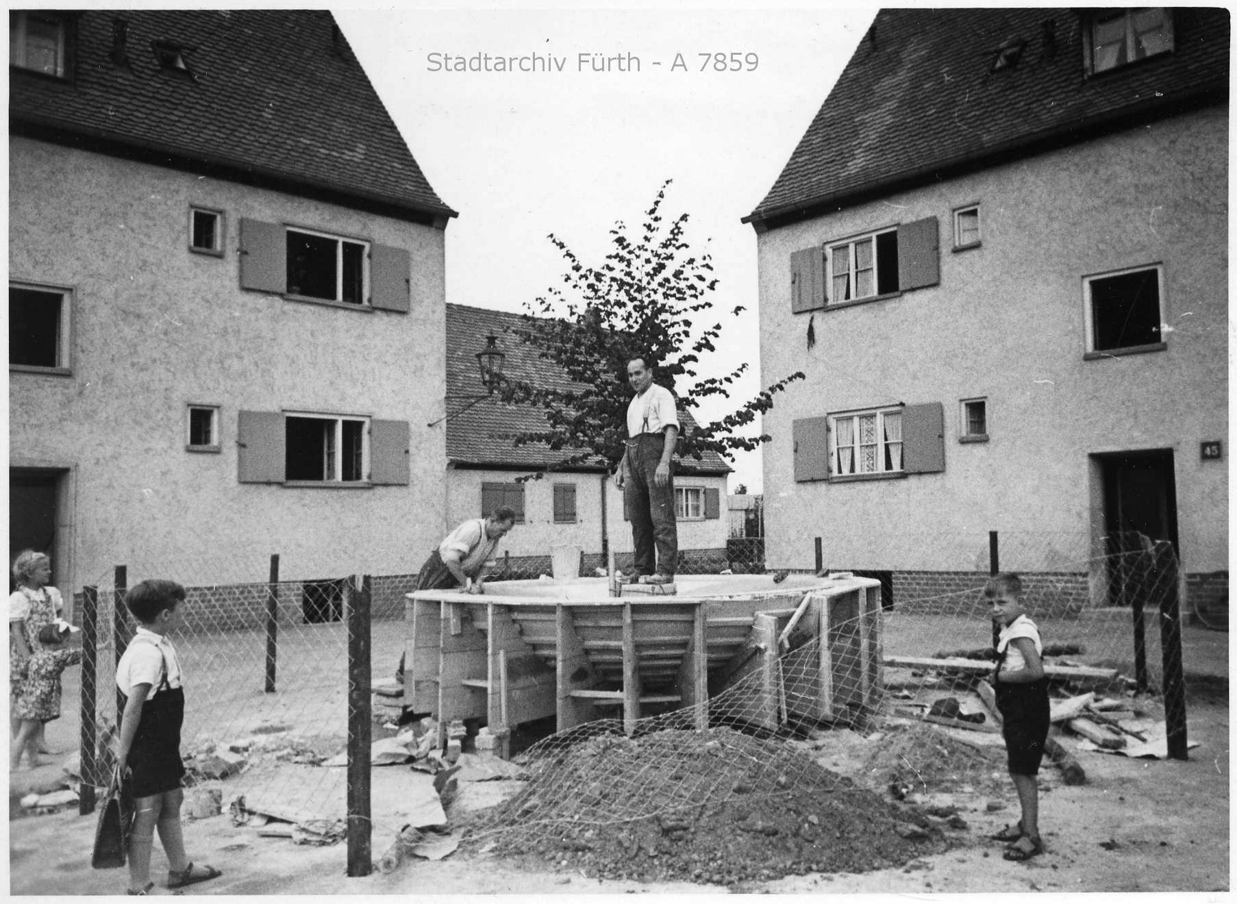 | Beschreibung | Beckenherstellung des Mutterbrunnens in der Wehlauer Straße, Sommer 1939 | ||
