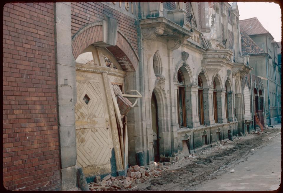 | Beschreibung | Blick auf das teilweise abgebrochene Hauptgebäude der Brauerei Geismann, Bäumenstraße 16 - 20 im Jahr 1982. Im Hintergrund das heute noch erhaltene Gebäude Bäumenstr. 14 | ||