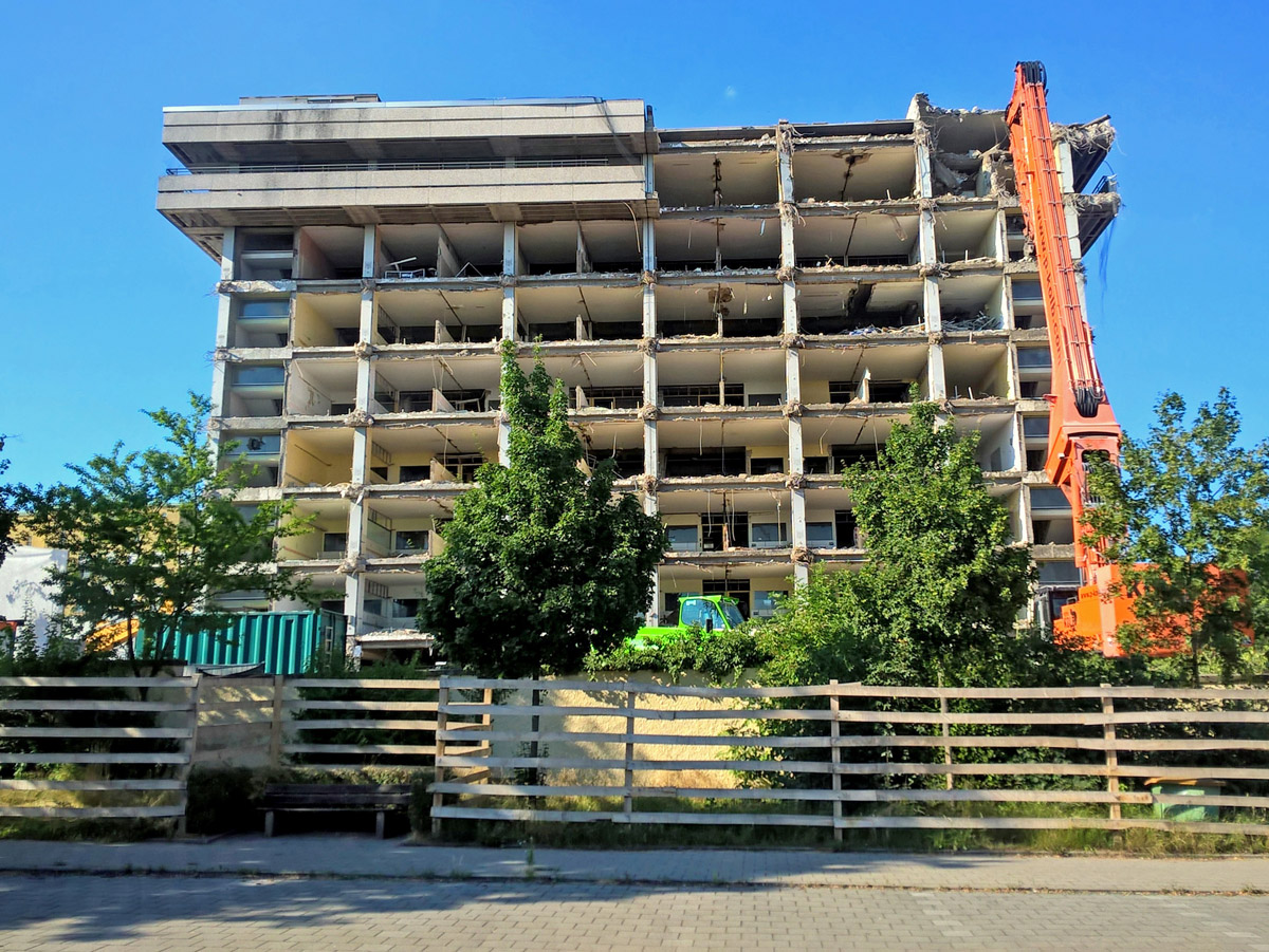 Kinderklinikum während des Abrisses, 2016.
