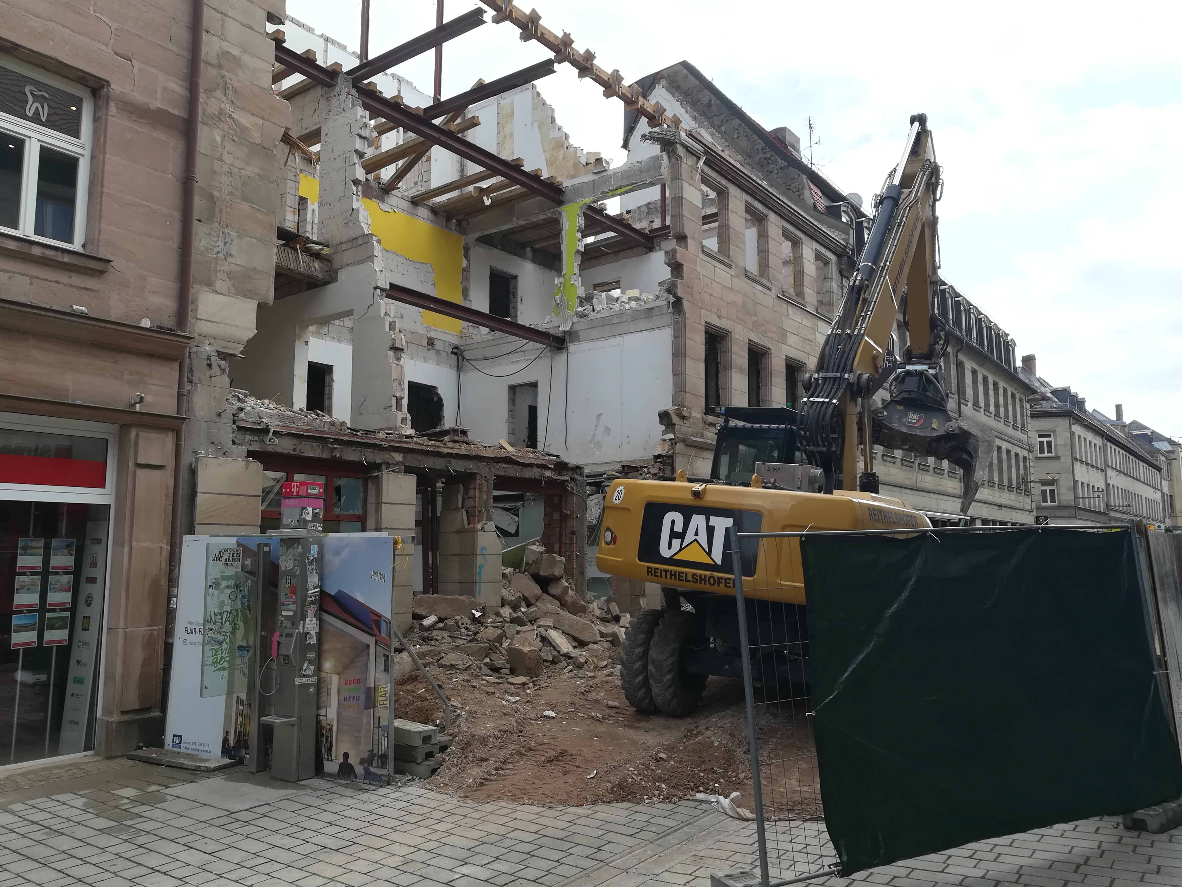 | Beschreibung | Abrissarbeiten an der Schwabacher Straße 5, ehem. Eingang zum City-Center, Mai 2019 | ||