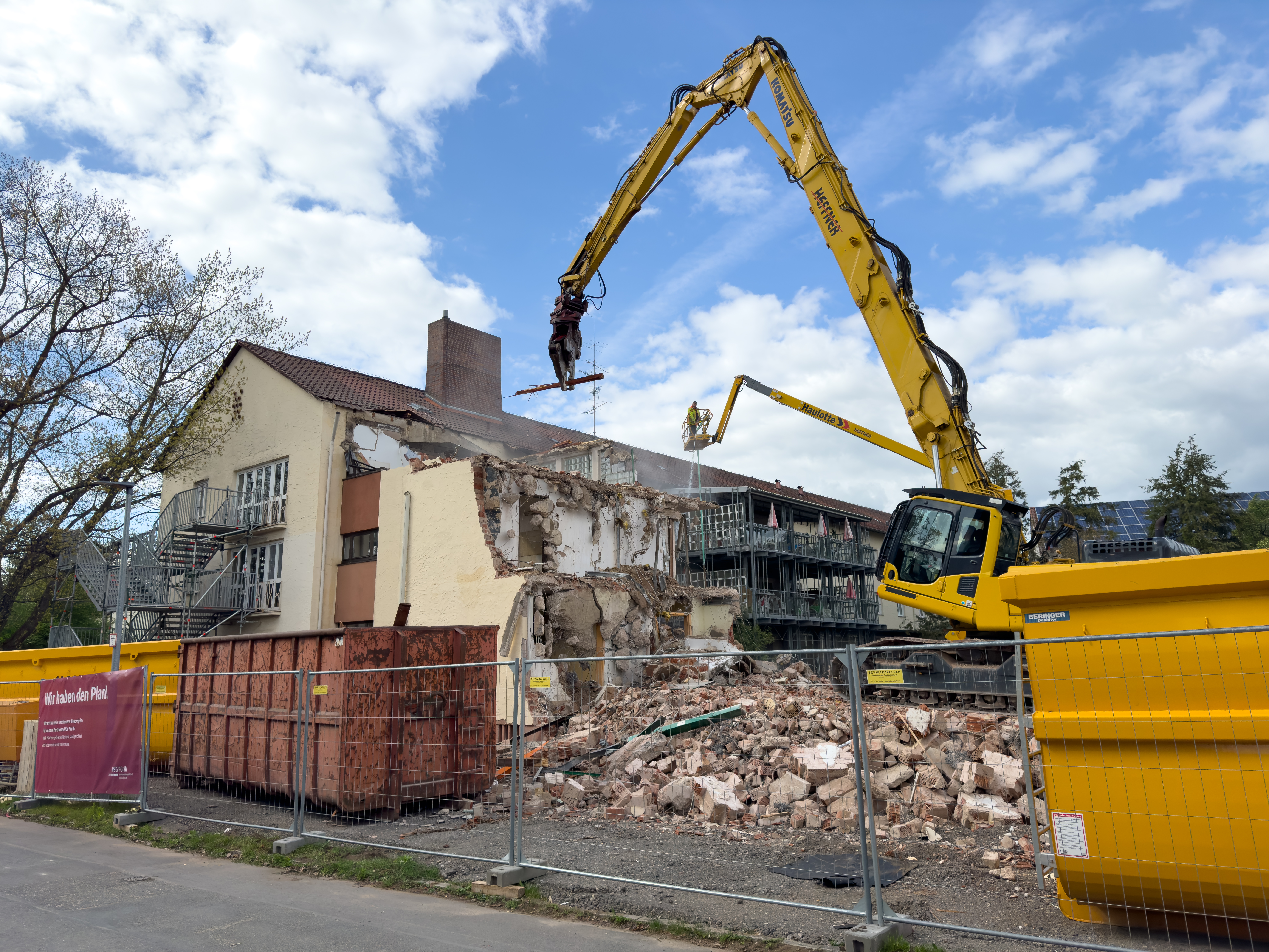 | Dateiinfo (Bild-Unterschrift und Info-Box, automatisch erstellt) | Abriss des südlichen Flügels des ehem. städtischen Stiftungsaltenheims, heutiges Paritätisches ... Abriss des südlichen Flügels des ehem. städtischen Stiftungsaltenheims, heutiges Paritätisches Seniorenstift Fürth, Apr. 2024<br>Urheber: Kamran Salimi<br><br>Lizenz: CC BY-SA 3.0 | ||