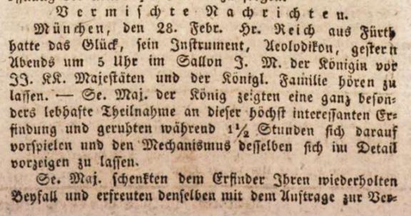 | Quellangaben | Münchener politische Zeitung, 29.02.1820; Bayerische Staatsbibliothek, digiPress online-Digitalisat | ||