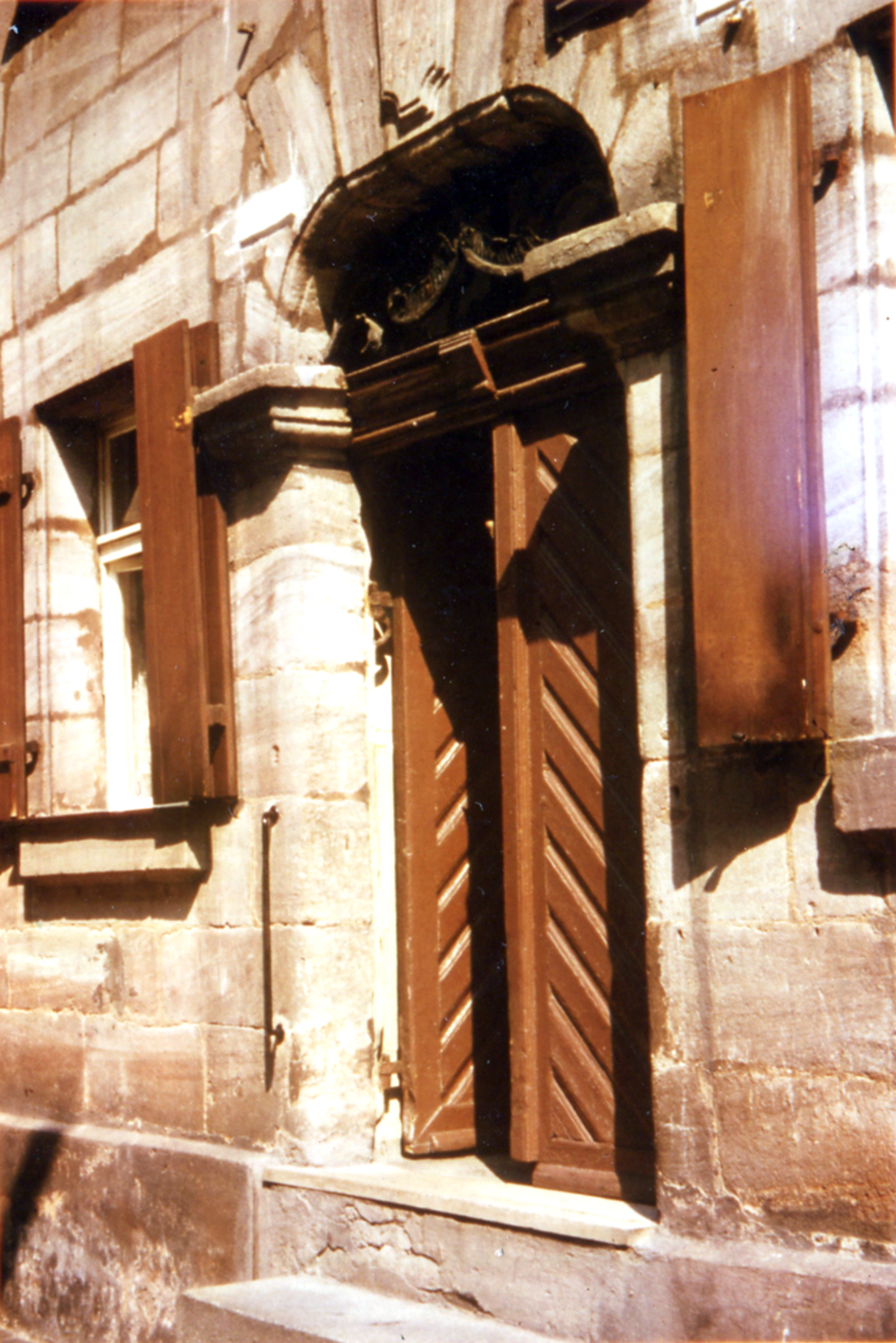 | Dateiinfo (Bild-Unterschrift und Info-Box, automatisch erstellt) | Eingangstür in der Alexanderstraße, 1969 Urheber: Leonhard Wittmann<br><br>Lizenz: CC BY-SA 3.0 | ||
