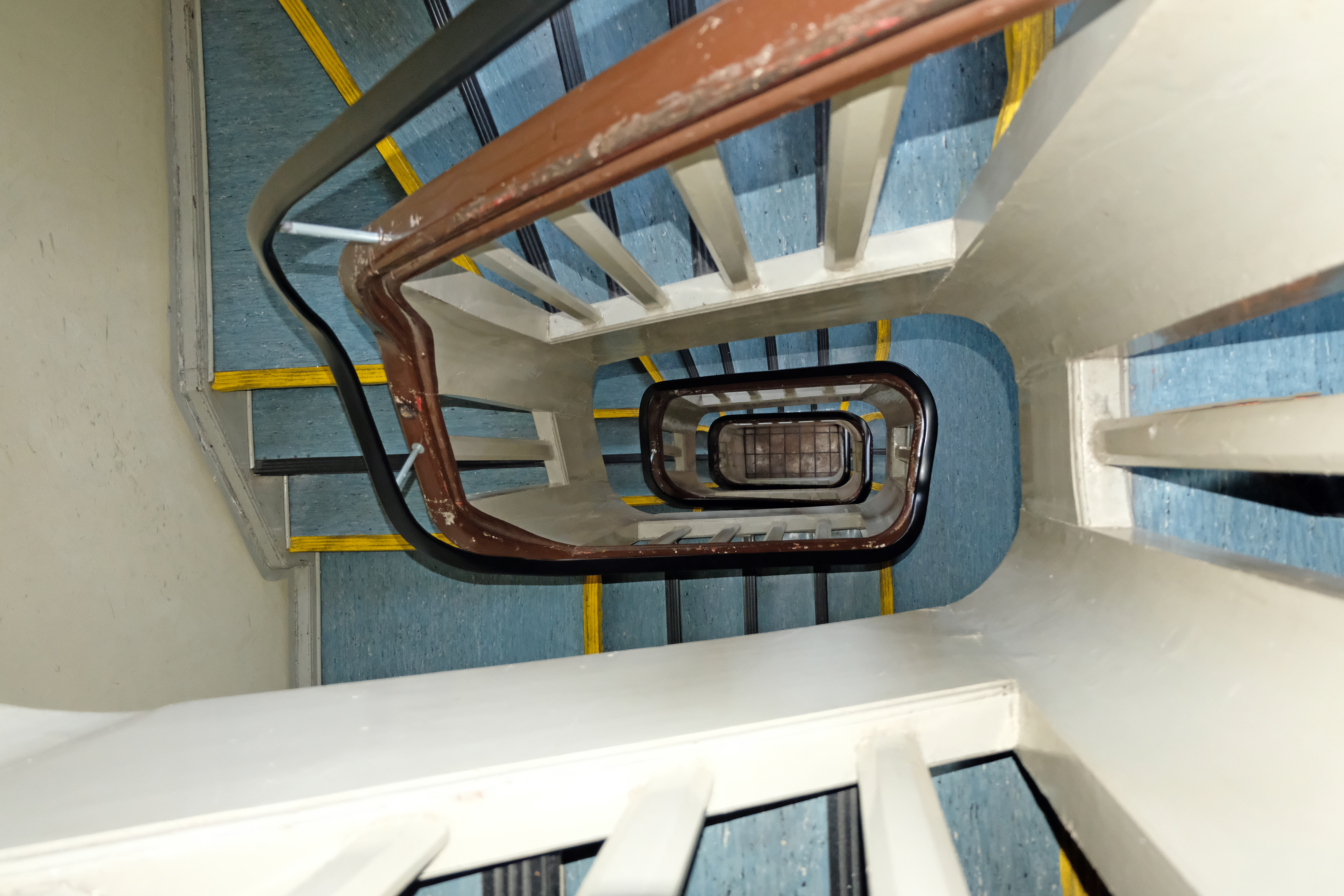 | Dateiinfo (Bild-Unterschrift und Info-Box, automatisch erstellt) | Alte Feuerwache - kleines Treppenhaus im Mitteltrakt zur Nordseite, Jan. 2019 Urheber: Kamran Salimi<br><br>Lizenz: CC BY-SA 3.0 | ||