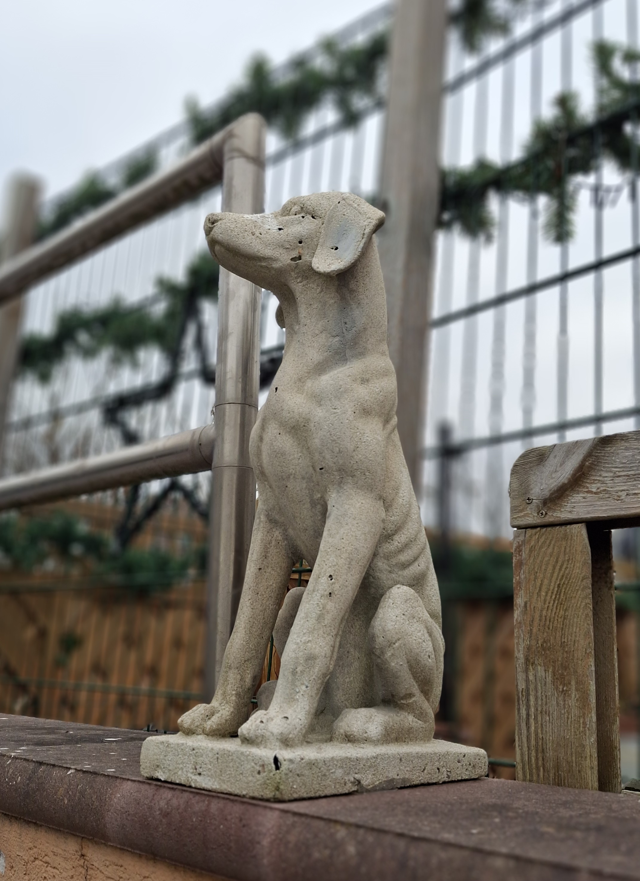 | Beschreibung | Hund auf Gartenmauer, Fürth, November 2025 | ||