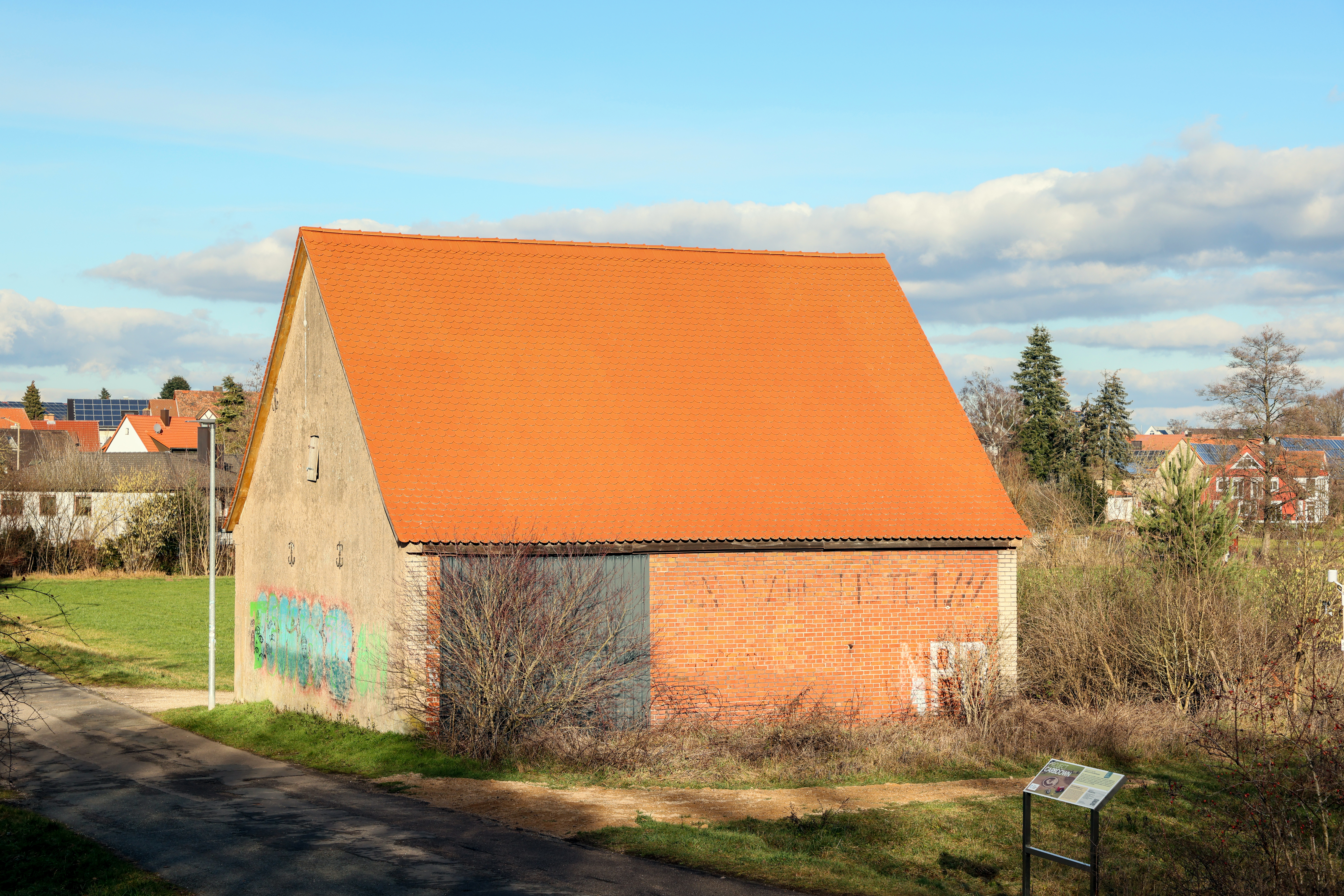 | Beschreibung | Scheune ohne Hausnummer an der Straße "Am Kieselbühl", Ansicht von Süden, Jan 2023 | ||