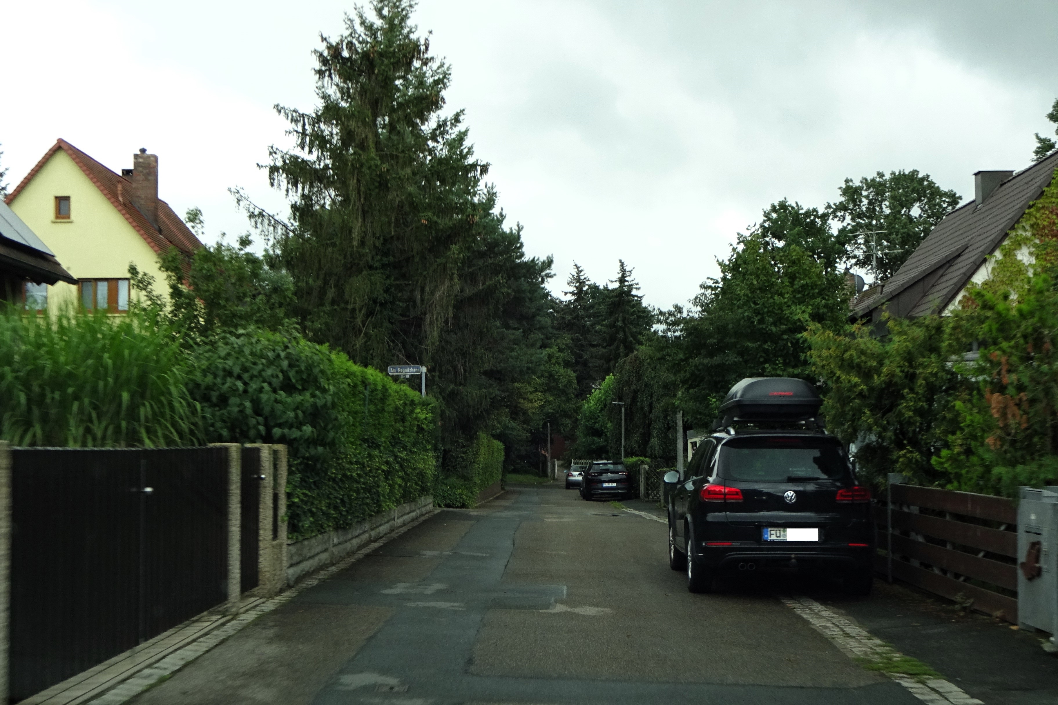 BeschreibungBlick in die Straße Am Regnitzhang Richtung Friedhof Stadeln, 2023