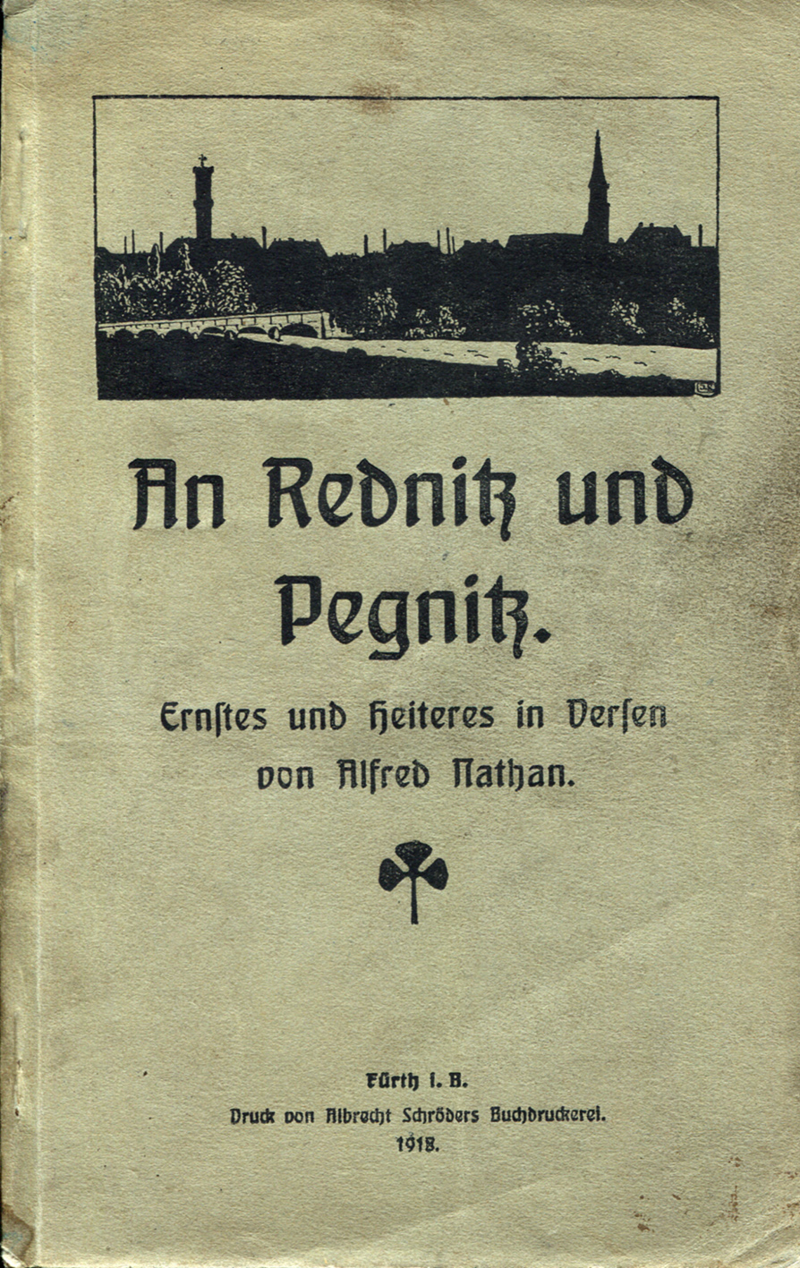 | Beschreibung | Titelseite: An Rednitz und Pegnitz - Ernstes und Heiteres in Versen von Alfred Nathan | ||