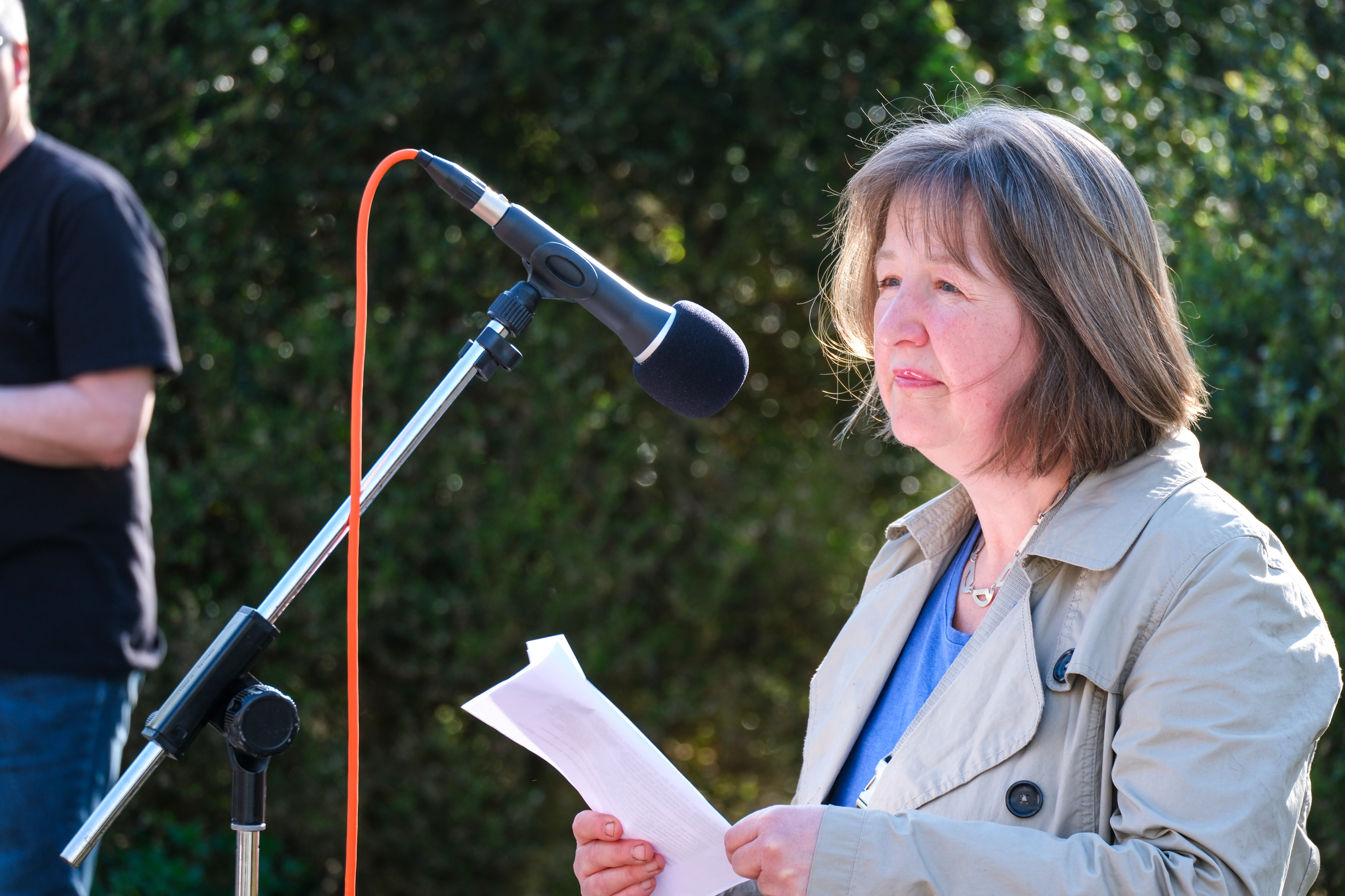 | Beschreibung | Sprecherin des Bündnis gegen Rechts - Anja Schmailzl - bei der Gedenkveranstaltung der ermordeten Benario und Goldmann an der Uferpromenade, April 2025 | ||