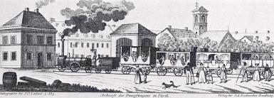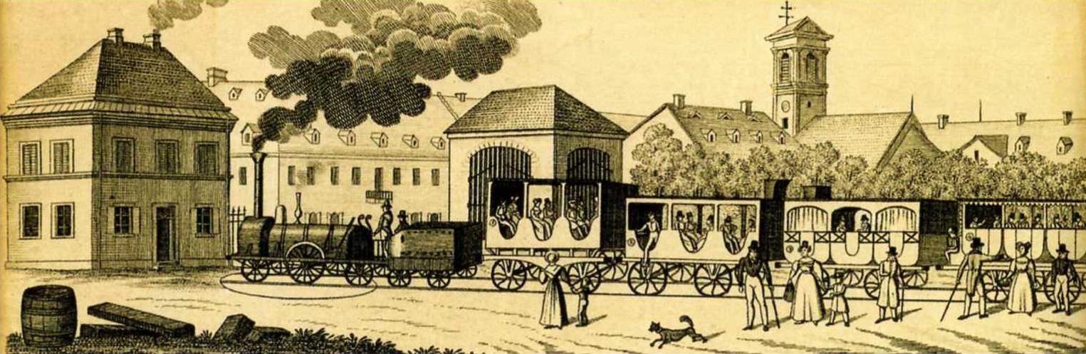 | Beschreibung | Ankunft der ersten deutschen Eisenbahn auf dem Ludwigsbahnhof in Fürth, J. J. Lechner 1835. Im Hintergrund der damalige Gasthof zur Eisenbahn | ||