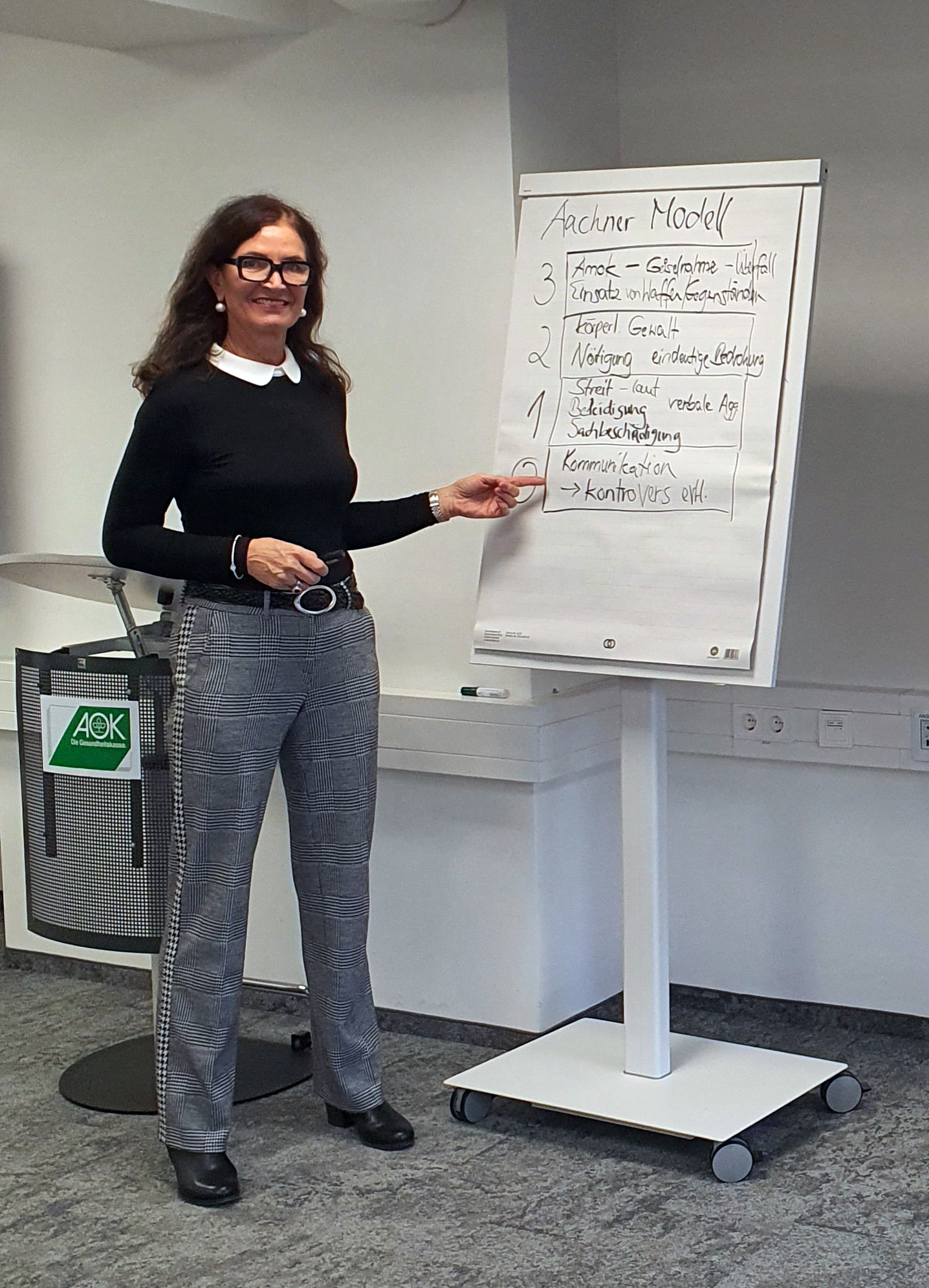 | Beschreibung | Annegret Steiger bei einem Vortrag bei der AOK Fürth, Dez. 2023 | ||