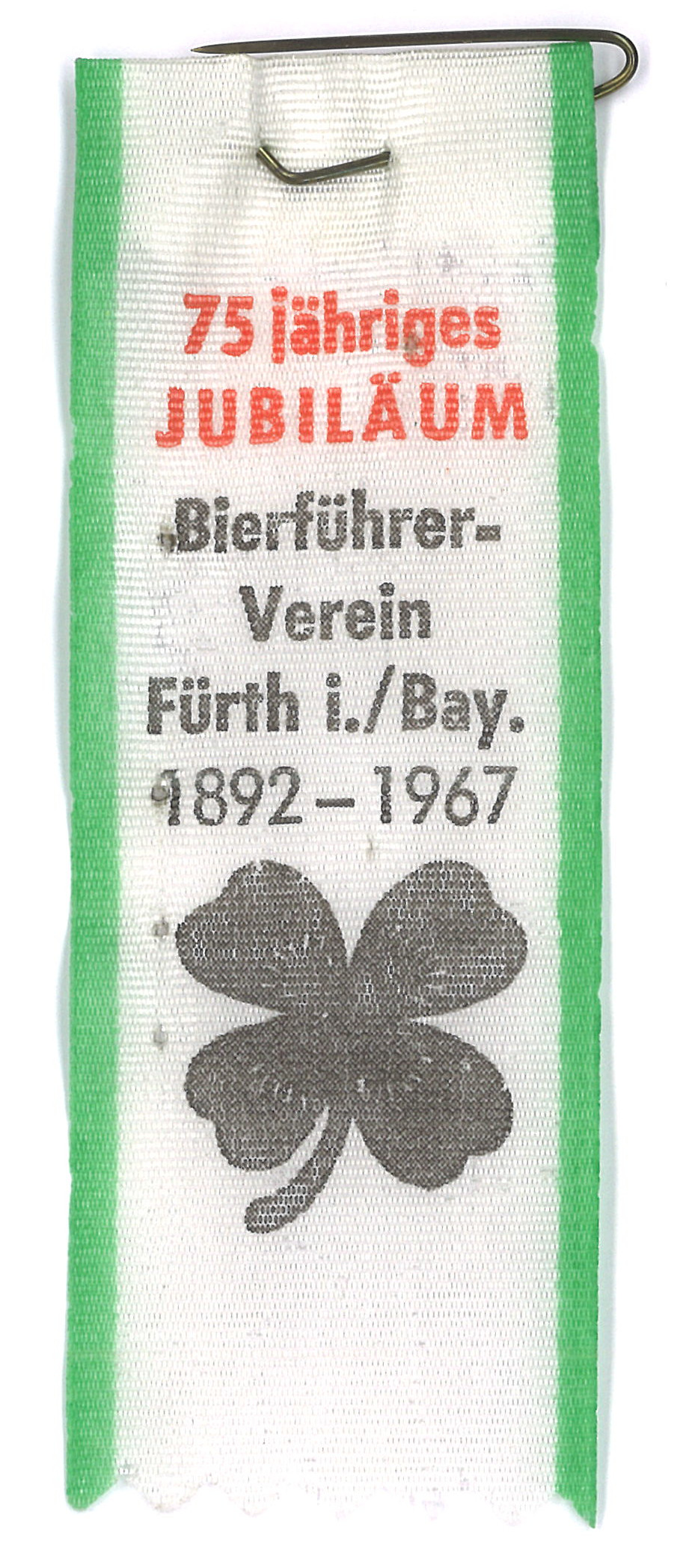 | Beschreibung | Anstecker des Bierführer-Vereins zu seinem 75-jährigen Jubiläum 1967 | ||