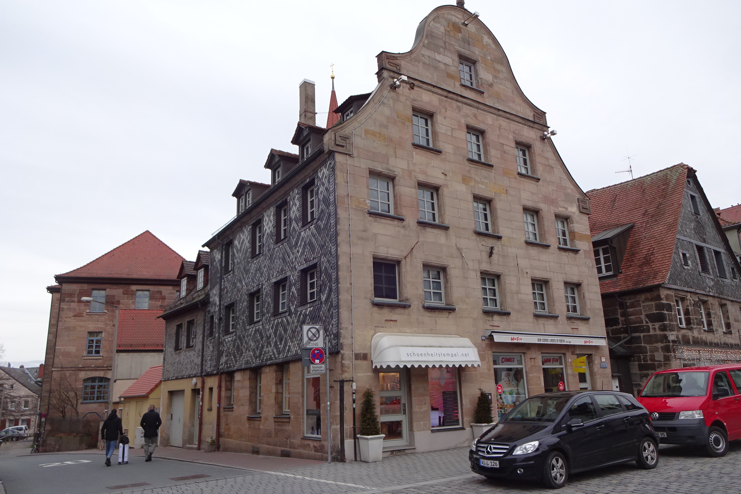 Anwesen Gustavstraße 58 mit seitlicher Schieferdeckung Blickrichtung Heiligenstraße. Daneben Gustavstraße 56.