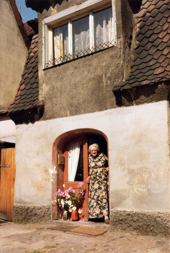 | Beschreibung | Letzte Anwohnerin des kleinsten Hauses in Fürth, Waagstr. 3, Aufnahme in den 1970er Jahren | ||