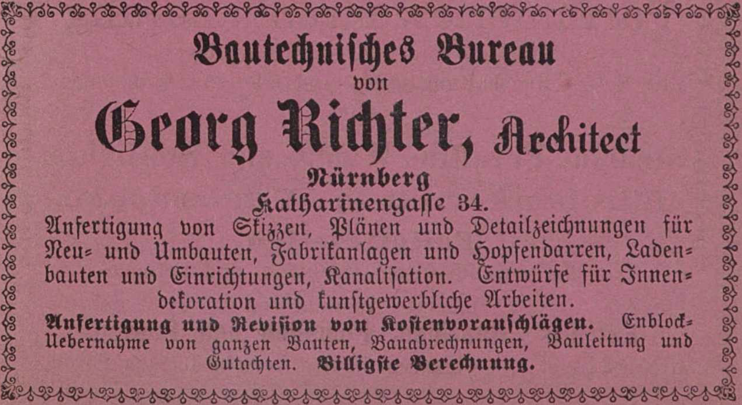 | Beschreibung | Anzeige des bautechnischen Büros Georg Richter, 1887 | ||