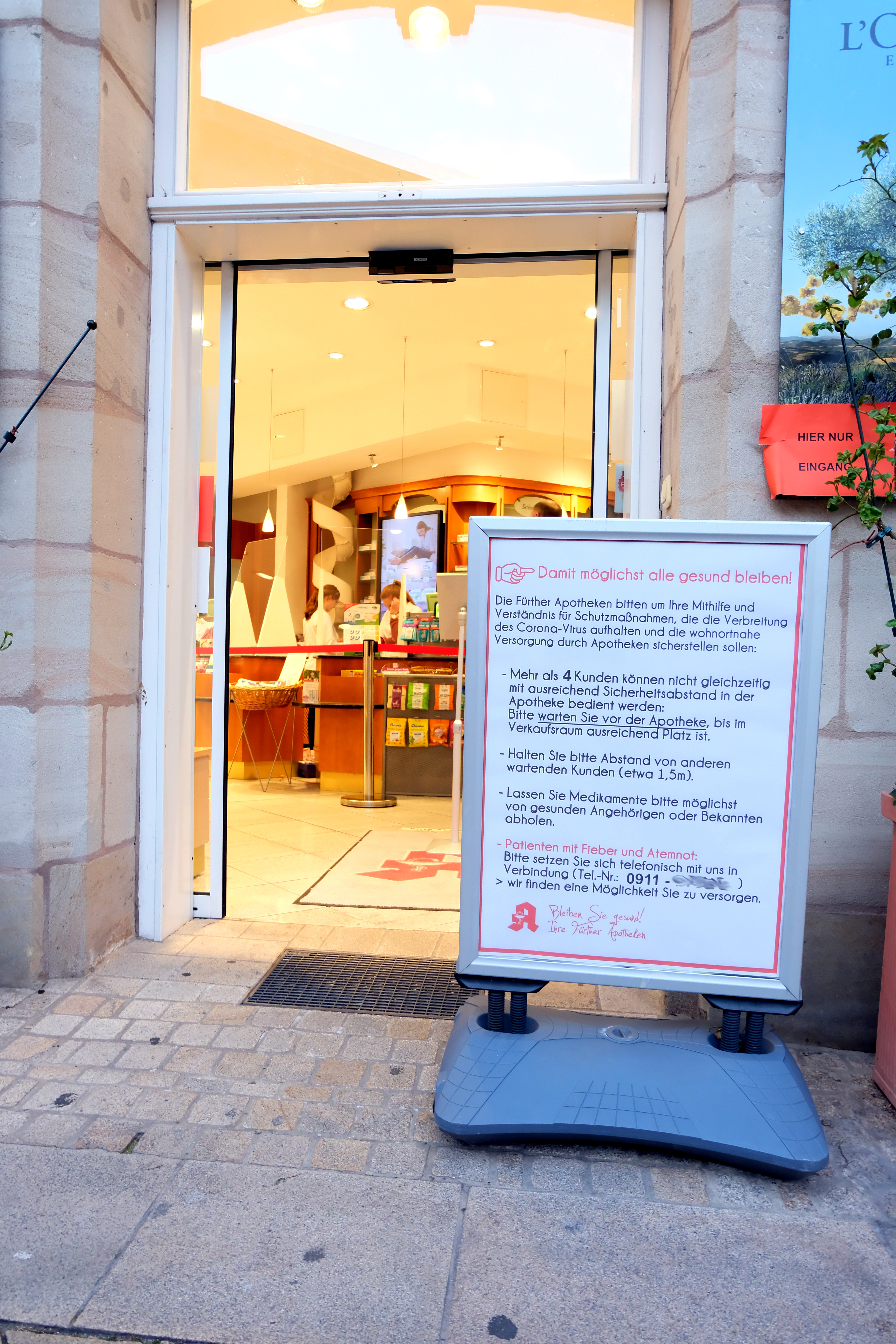 | Beschreibung | Kundenhinweis in Fürther Apotheken im Umgang mit dem Corona-Virus, Mrz. 2020 | ||