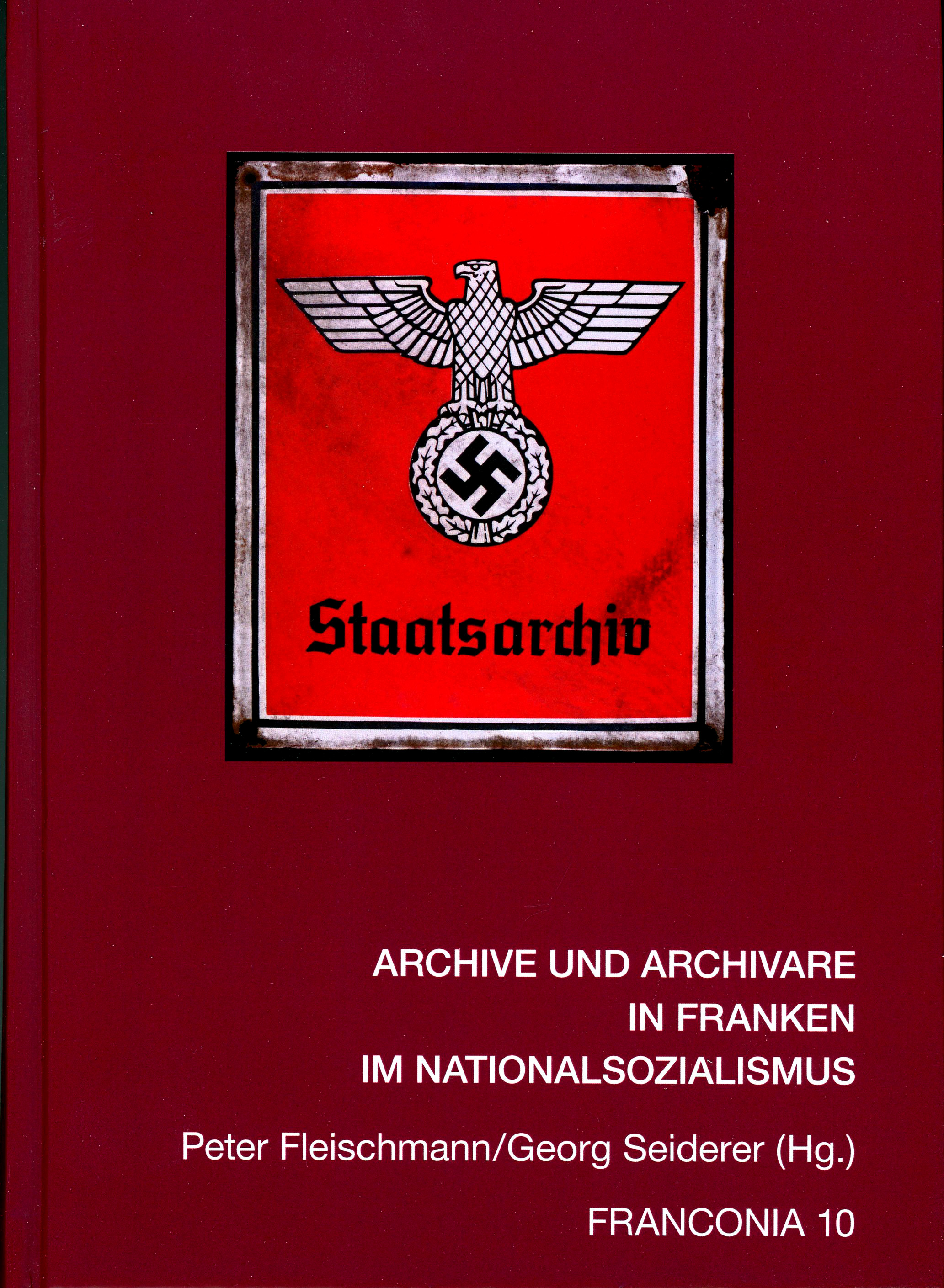 | Dateiinfo (Bild-Unterschrift und Info-Box, automatisch erstellt) | Titelseite: Archive und Archivare in Franken im Nationalsozialismus, 2019 Urheber: Franconia, Staatsarchiv Nürnberg<br><br>Lizenz: CC BY-SA 3.0 | ||