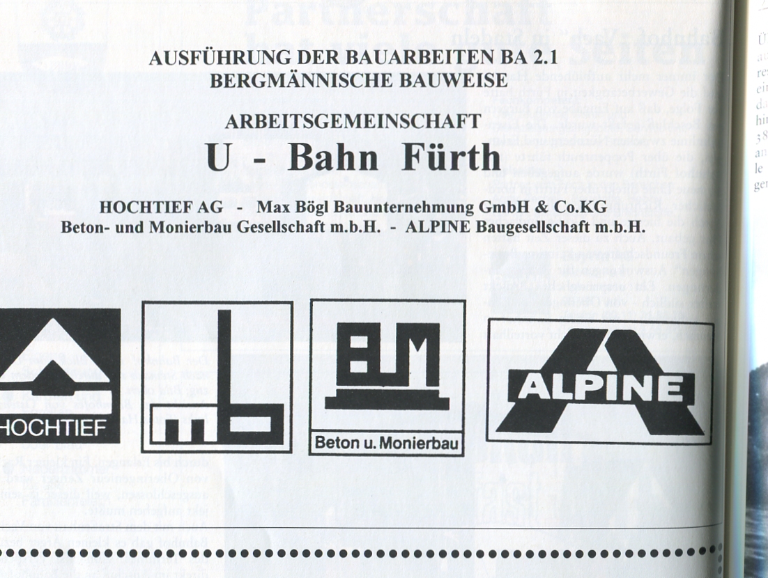 | Beschreibung | Werbeanzeige der ARGE U-Bahn Fürth Bauabschnitt 2.1 von 1996 | ||