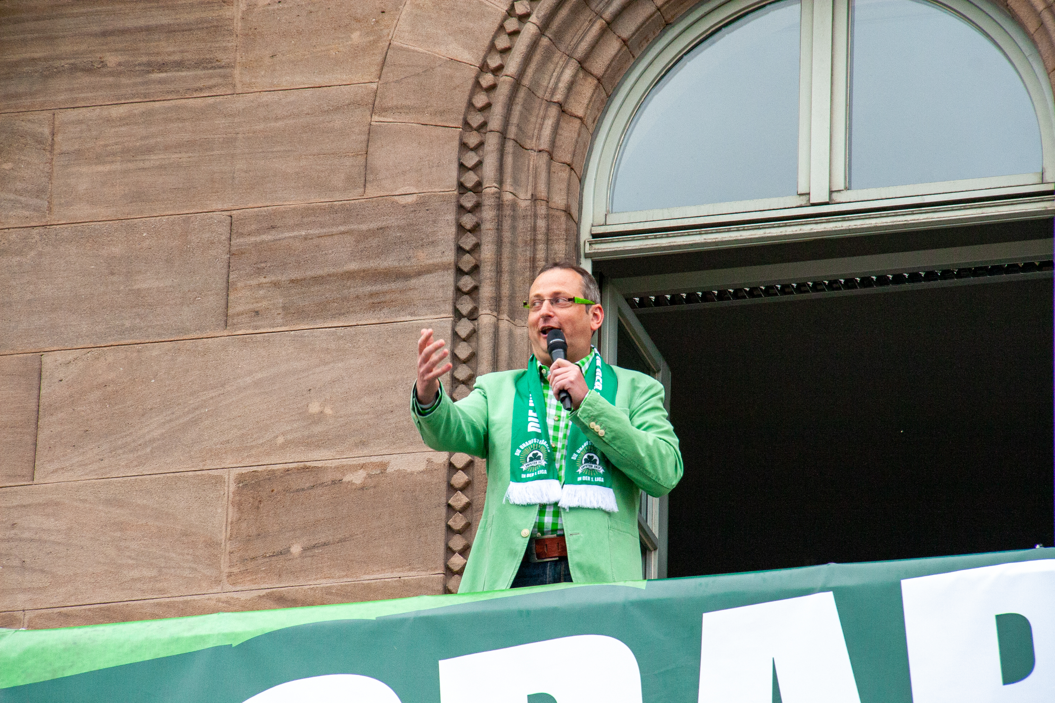 | Beschreibung | Aufstiegsfeier der SpVgg - hier am Rathaus mit Volker Heißmann auf dem Balkon, April 2012 | ||