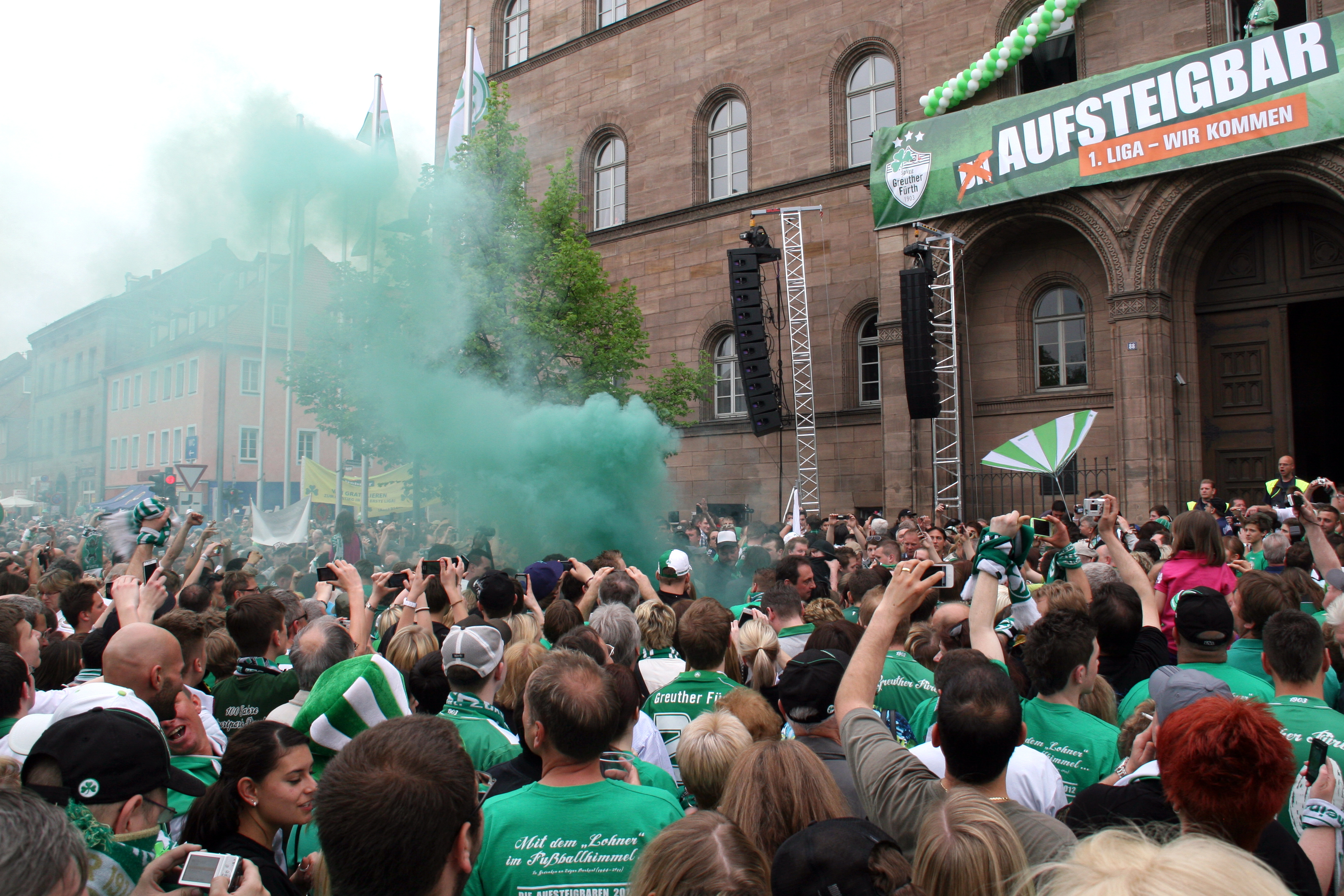 | Beschreibung | Aufstiegsfeier der Spielvereinigung am Rathaus, April 2012 | ||
