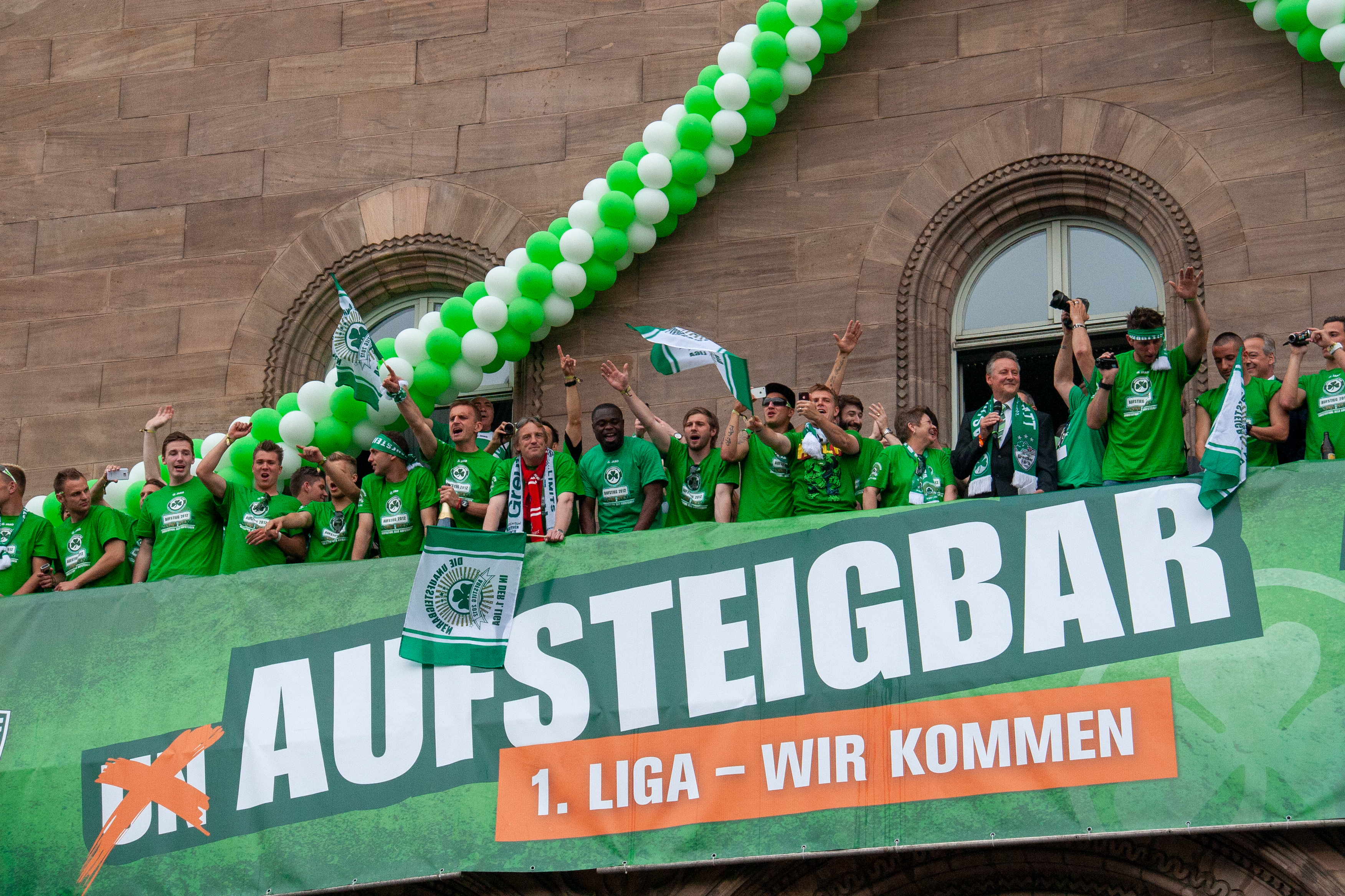 | Beschreibung | Aufstiegsfeier der Spielvereinigung vor dem Rathaus in die erste Bundesliga, April 2012 | ||