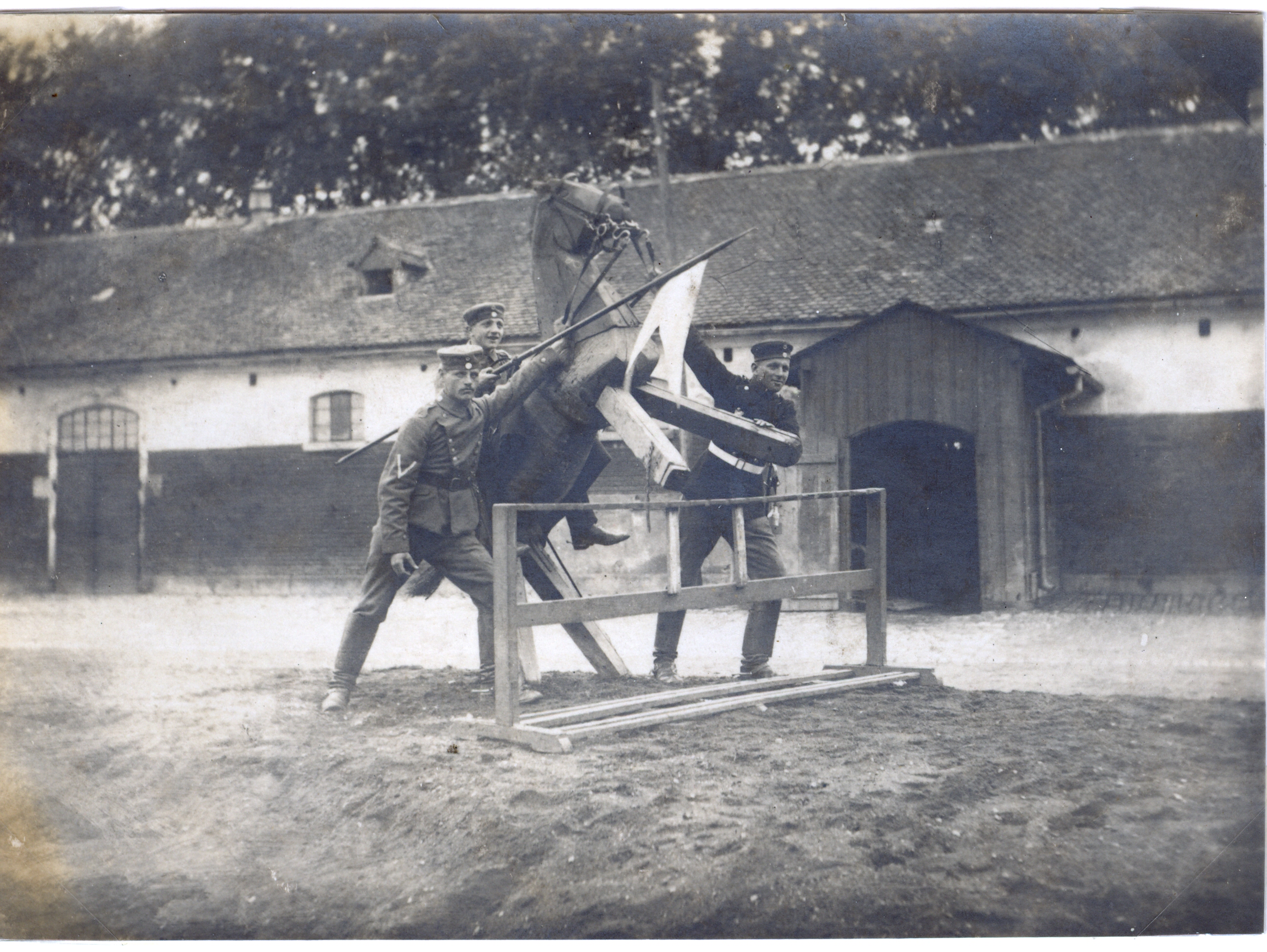 | Beschreibung | Ulanen-Ausbildung am Holzpferd in Ansbach (L. Schildknecht auf dem Holzpferd) | ||