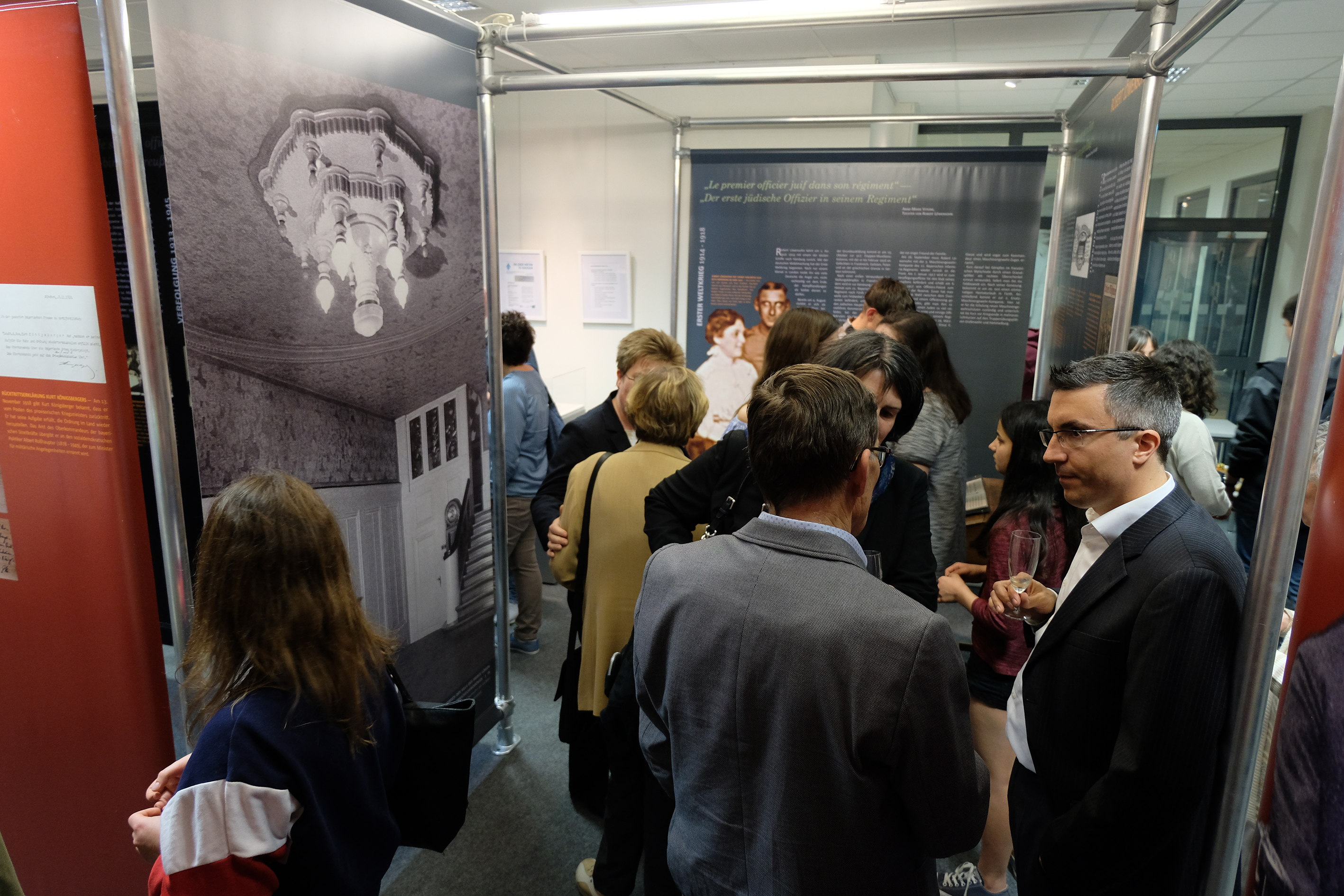 | Beschreibung | Ausstellungseröffnung im Dietrich-Bonhoeffner-Gymnasium Oberasbach: "„In der heym is daham. Wie jüdische Fürther ihre bayerische Heimat im Jahr 1918 gestalteten – und wie die Heimat es ihnen dankte“ über die beiden jüdischen Fürther Robert Löwensohn und Kurt Königsberger, April 2018 | ||