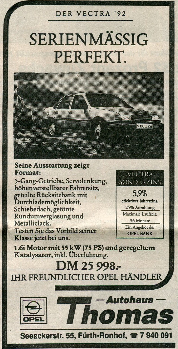 | Beschreibung | Werbung in der FN vom Autohaus Thomas 1992 | ||