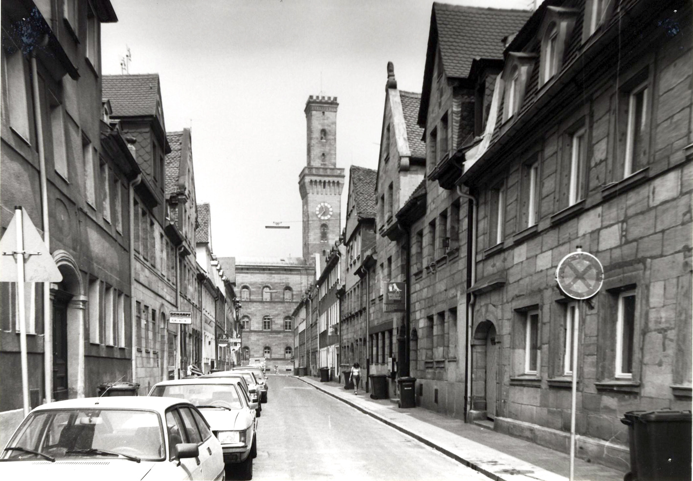 | Beschreibung | Die Bäumenstraße, um 1980. Im Hintergrund das Fürther Rathaus. | ||