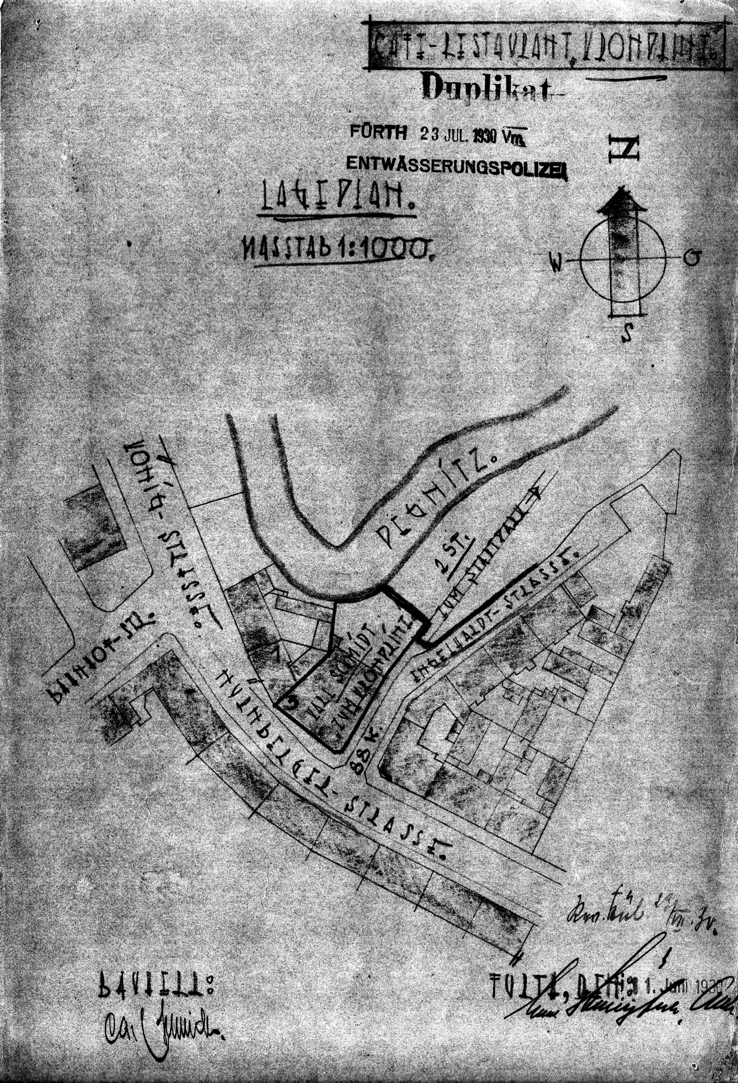 | Dateiinfo (Bild-Unterschrift und Info-Box, automatisch erstellt) | Plan/Bauzeichnung des Anwesens Nürnberger Straße 3, Kronprinz/Babylon vom 11. Juni 1930 Lizenz: CC BY-SA 4.0 | ||