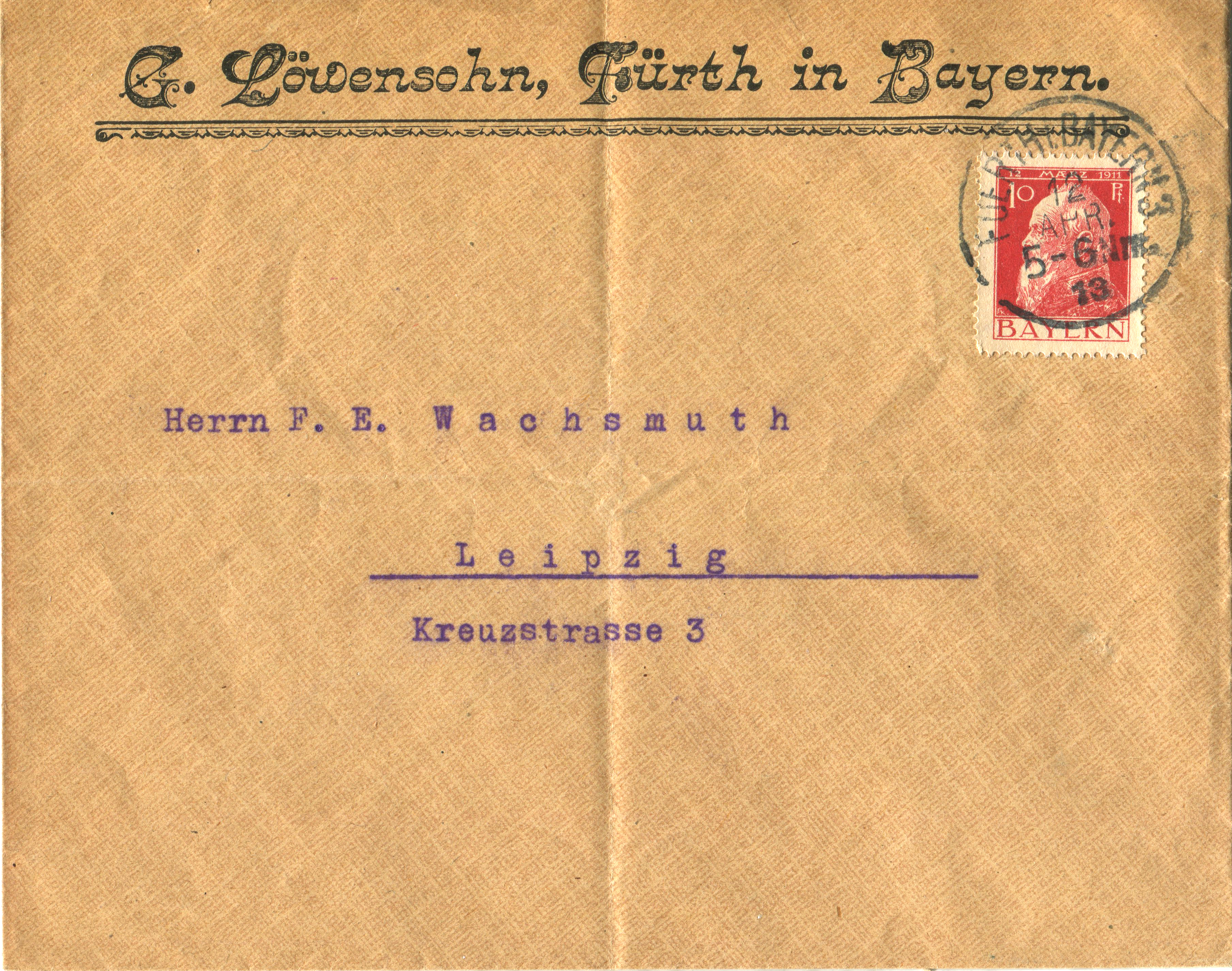 | Dateiinfo (Bild-Unterschrift und Info-Box, automatisch erstellt) | Briefumschlag Gustav Löwensohn, gel. 1915 Lizenz: CC BY-SA 3.0 | ||